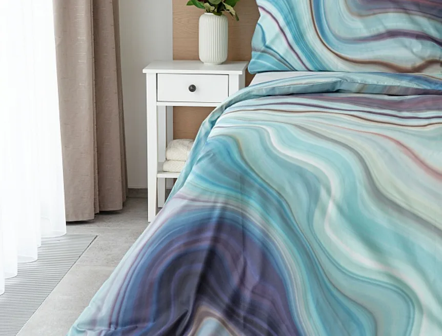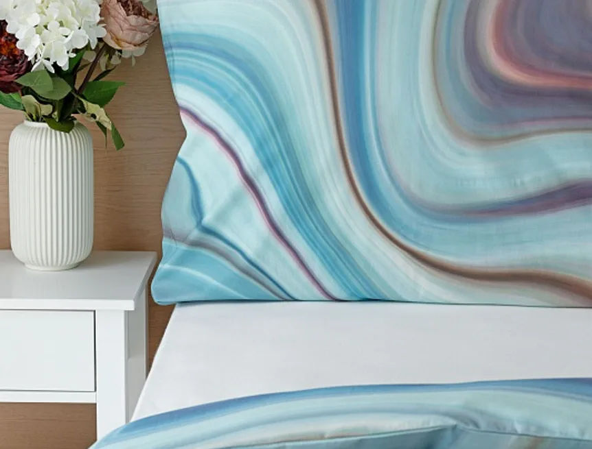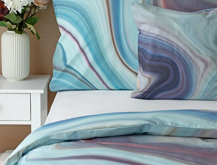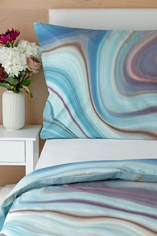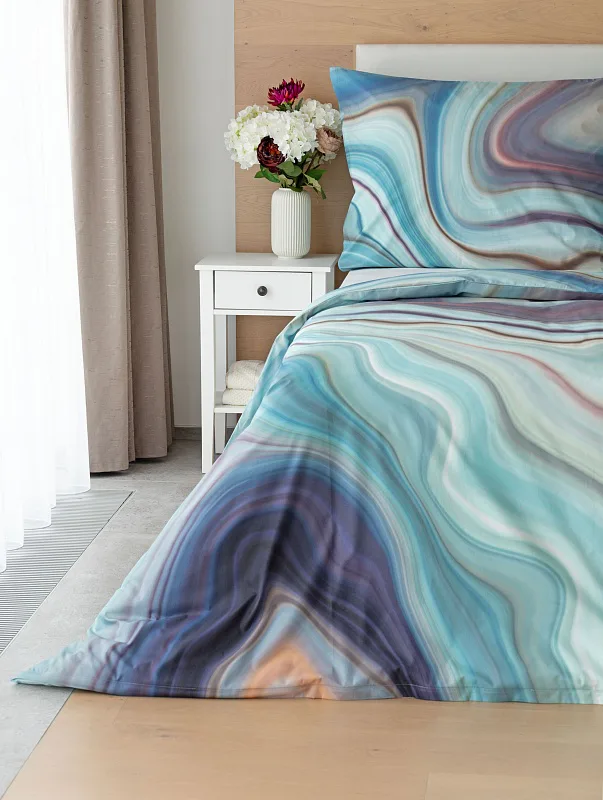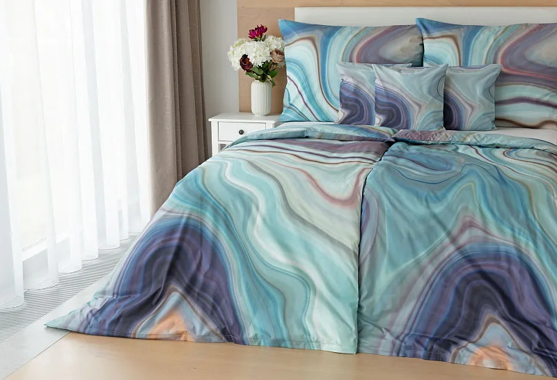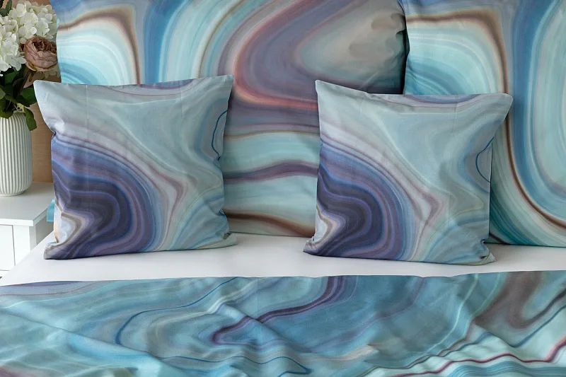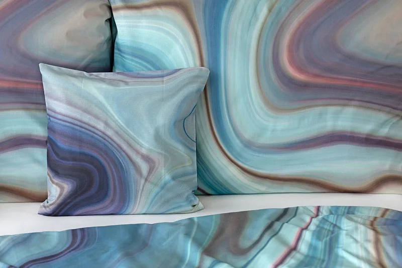 Moderné obliečky Achát sa stanú skutočným klenotom nielen minimalisticky zariadenej spálne. Nechajte sa okúzliť noblesne zladenými farbami, v ktorých sa odrážajú jemné tóny odtieňov modrej, šedej, fialovej, staroružovej a zlatisto hnedej. Obliečky bavlna deluxe digitál sú tlačené najmodernejšou digitálnou tlačou, ktorá zaisťuje vysoko precízny detail.