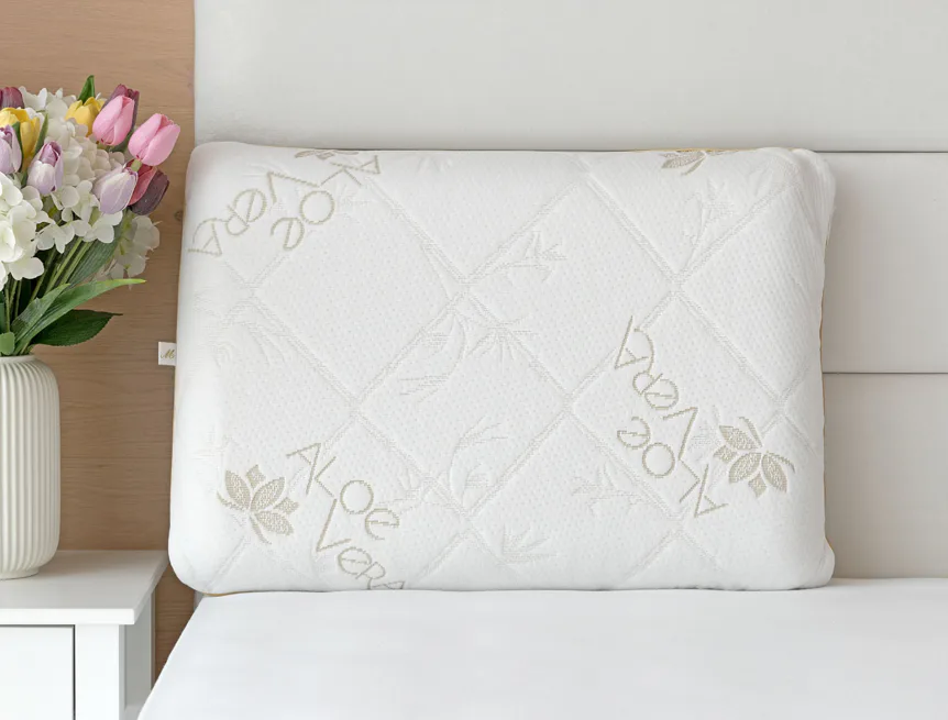 Potah polštáře je prodyšný a je navíc obohacený o mikročástice Aloe Vera, které se postupně uvolňují, působí pozitivně na pokožku a prohlubují relaxaci během spánku. Přirozená antibakteriální schopnost a čistě přírodní původ aktivních látek zaručují vhodné podmínky i pro alergiky, astmatiky a jedince s citlivou pokožkou.
