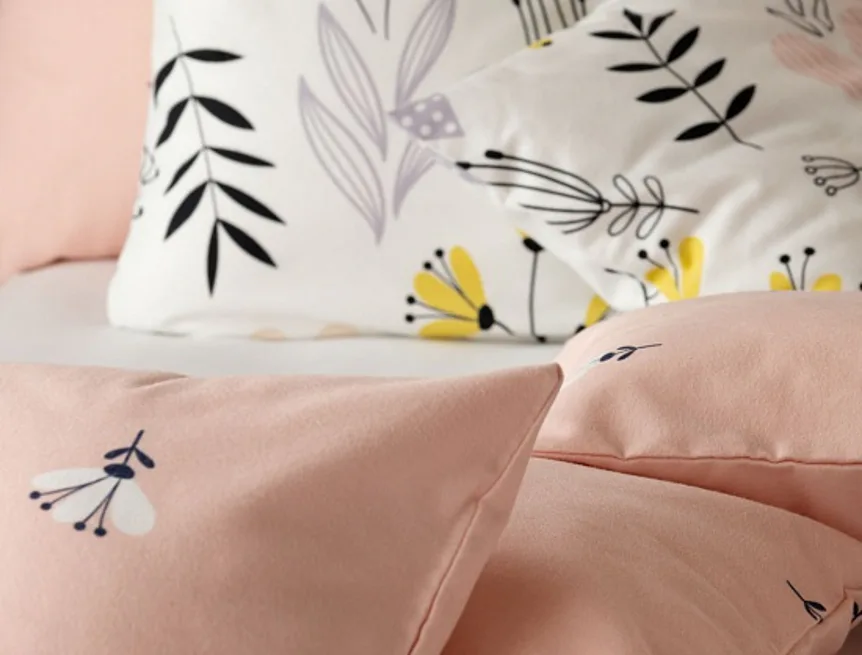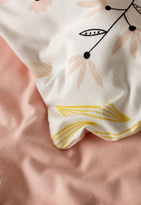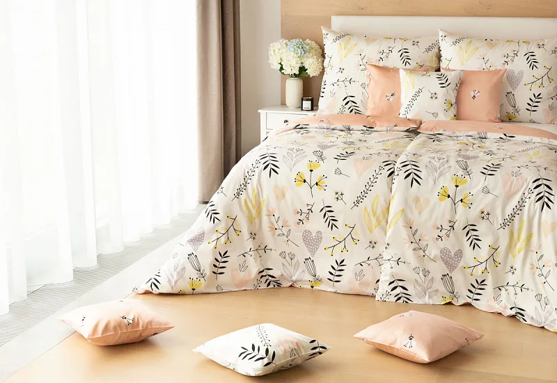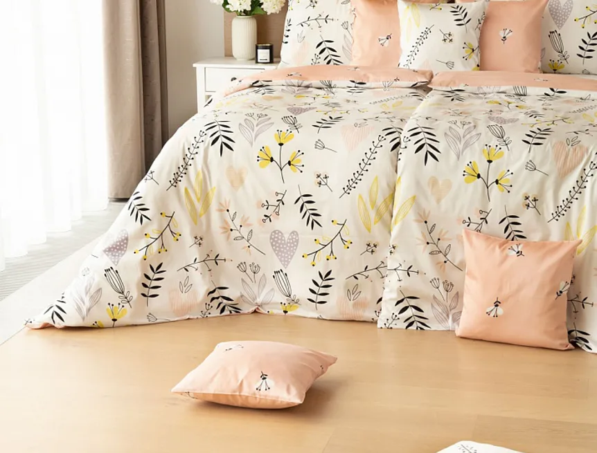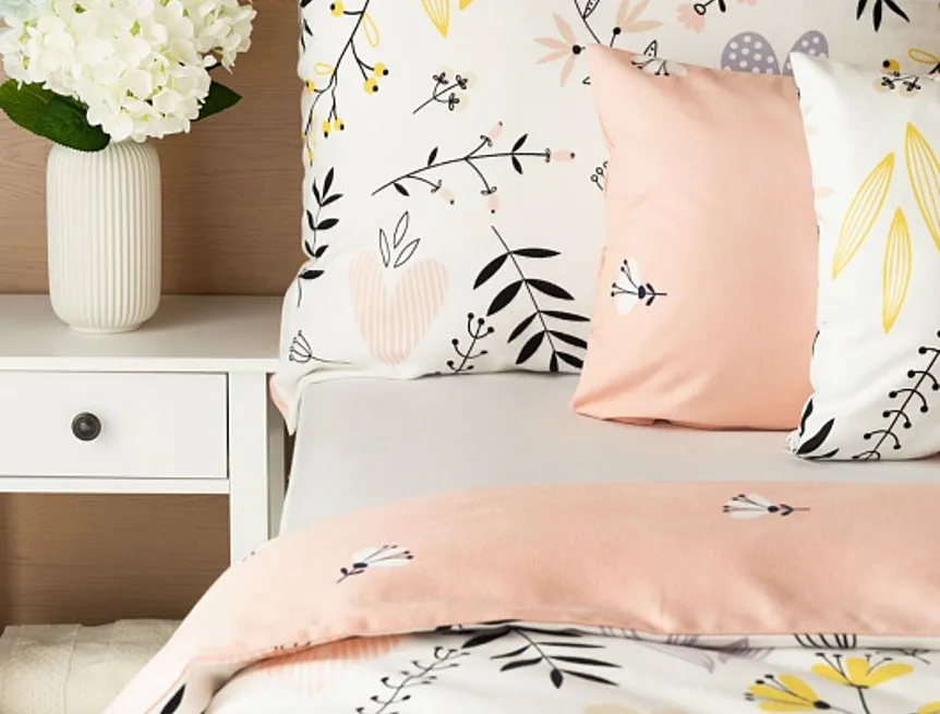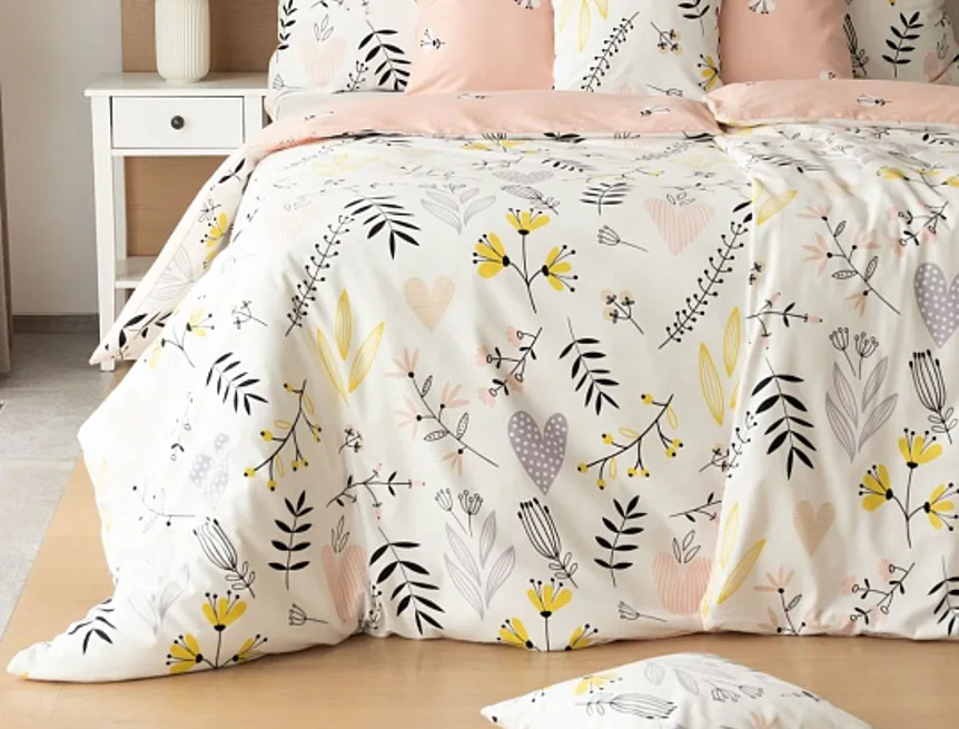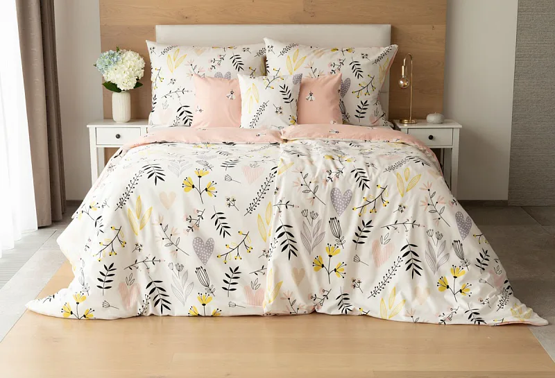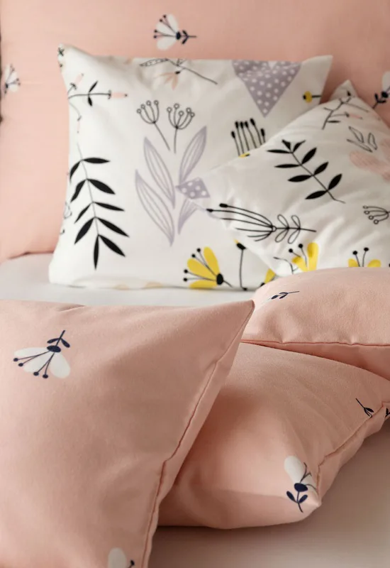 Obliečka na vankúš aj na prikrývku je z každej strany iná - vrchnú stranu zdobí atraktívny florálny vzor na bielom podklade, na spodnej strane je vyobrazený drobný kvetinový motív na ružovom podklade. Obliečky sú vybavené komfortným zipsovým uzáverom.