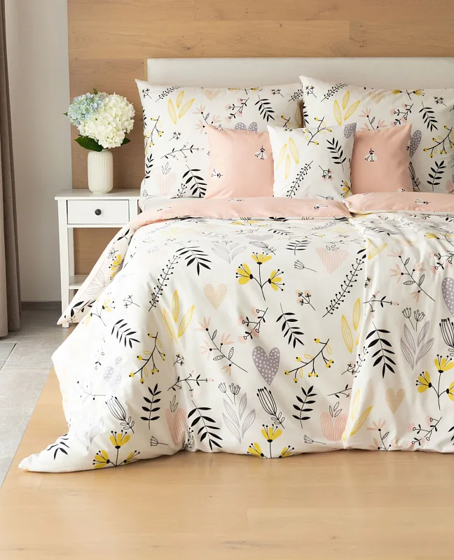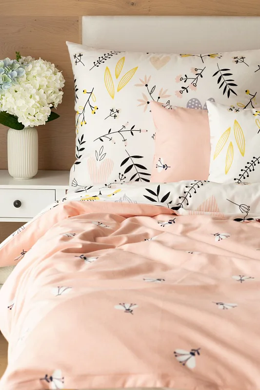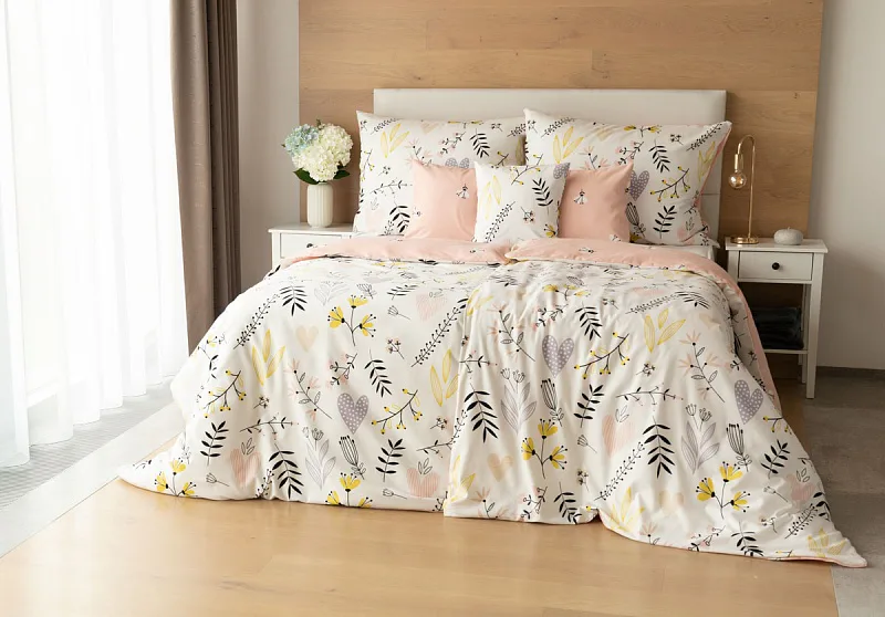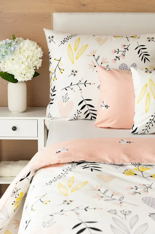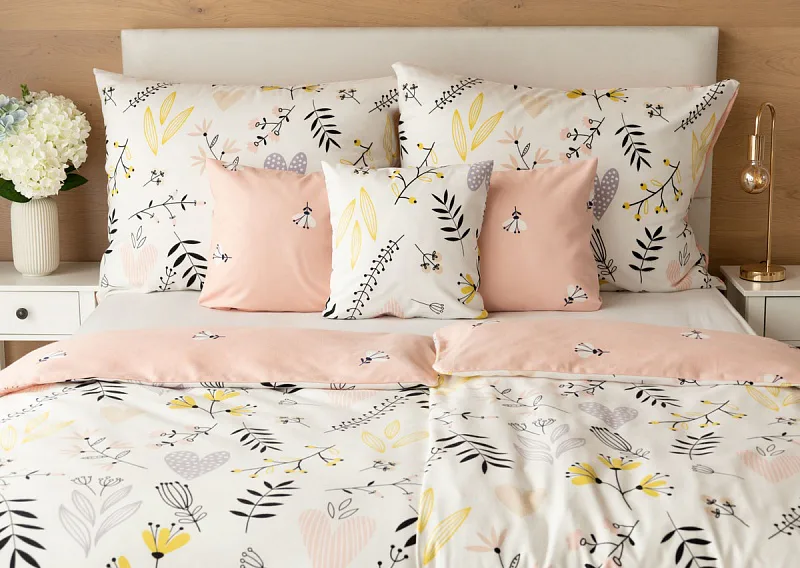 Užite si hravé ustielanie s okúzľujúcimi obliečkami Amelie. Jemný florálny vzor so srdiečkami v kombinácii so svetlo ružovou farbou spravia parádu nielen v útulnej spálni, ale aj v modernej dievčenskej izbe.