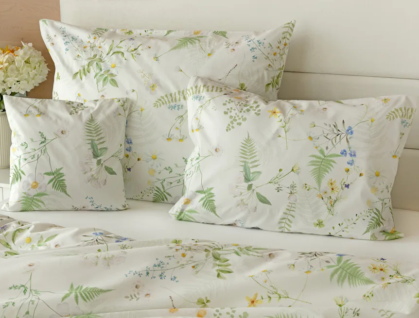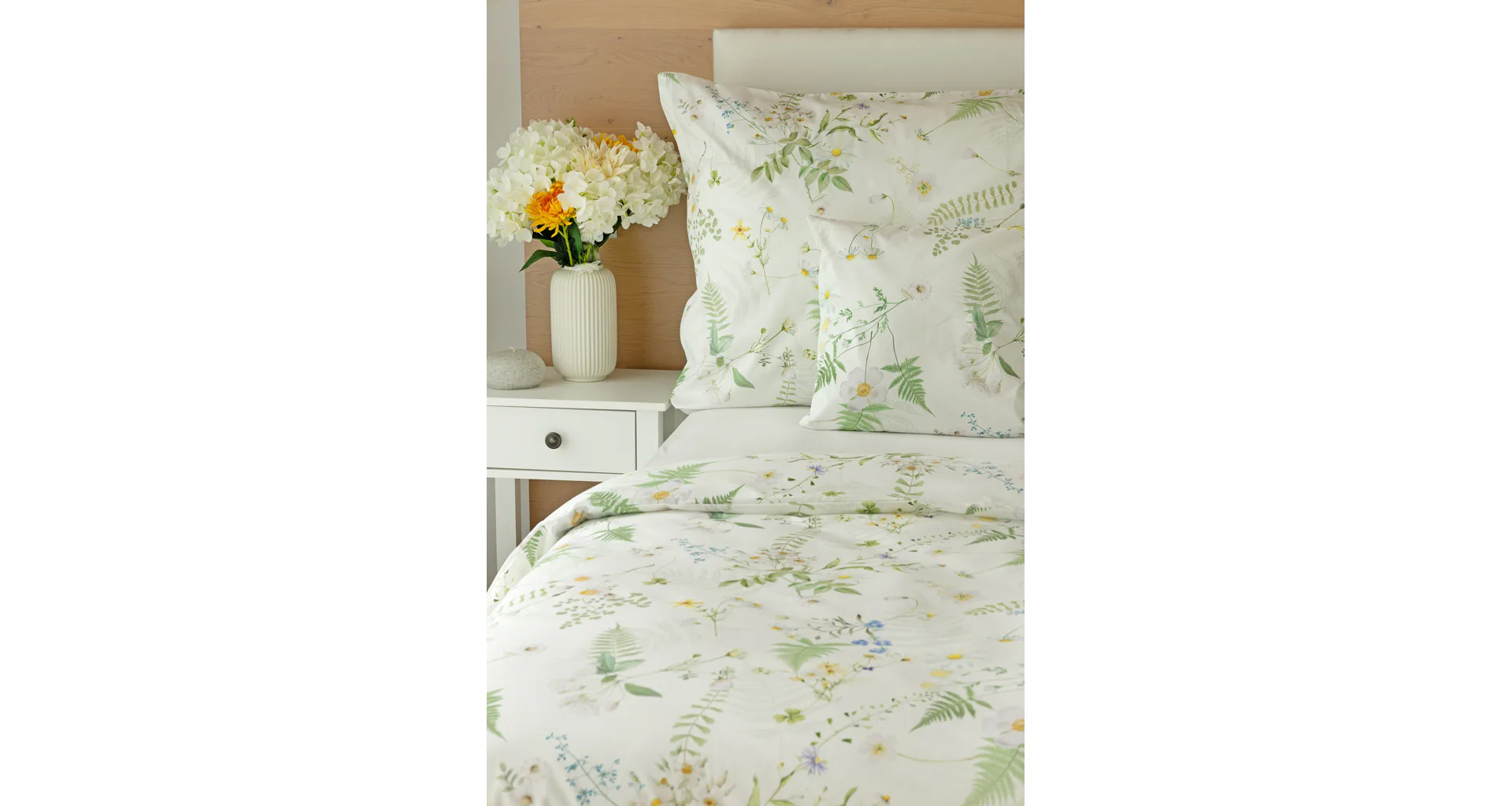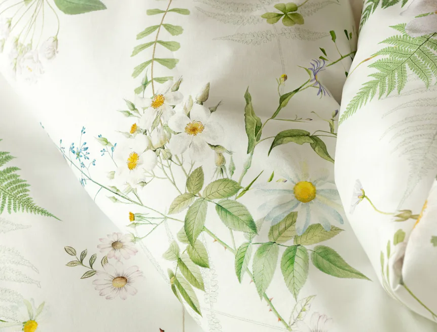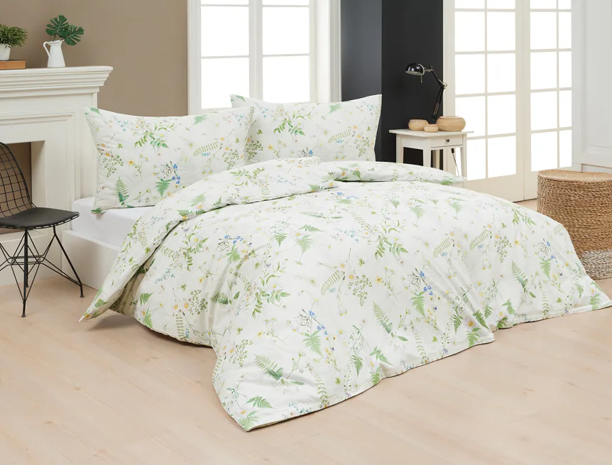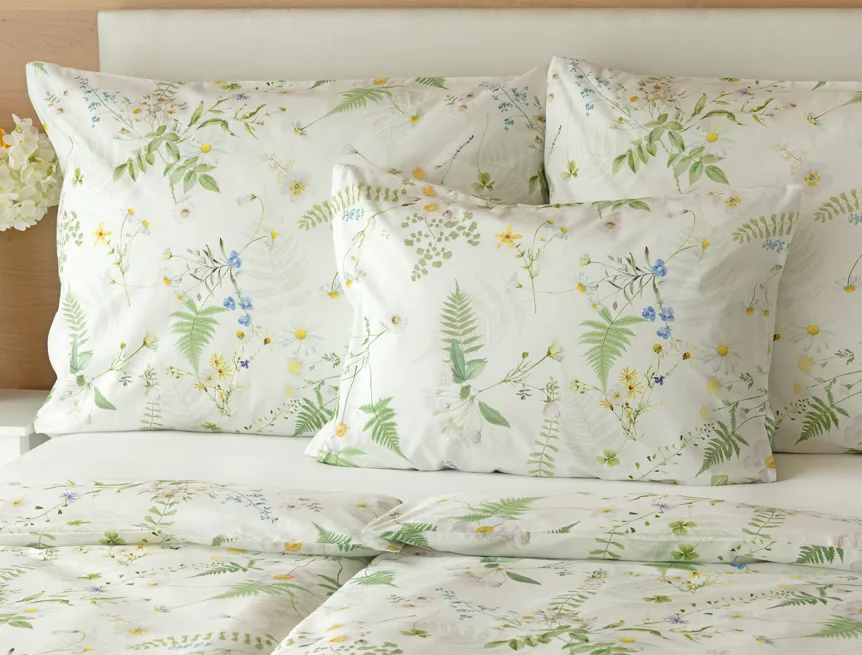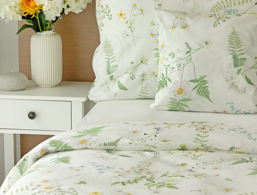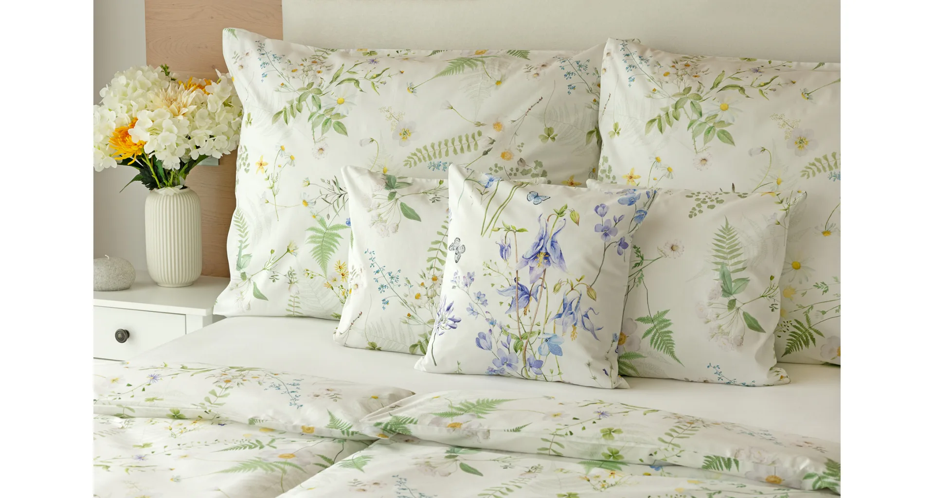 Nežný kvetinový motív posteľného prádla Aria si zaslúži vašu pozornosť. Jemné lúčne kvety, ktoré sú rôzne poprepletané vynikajú na bielom podklade a pôsobia nesmierne čistým dojmom. Dokonalá jarná sviežosť. Vďaka najmodernejšej digitálnej tlačovej technológii vyniká každý kvet v precíznom detaile.