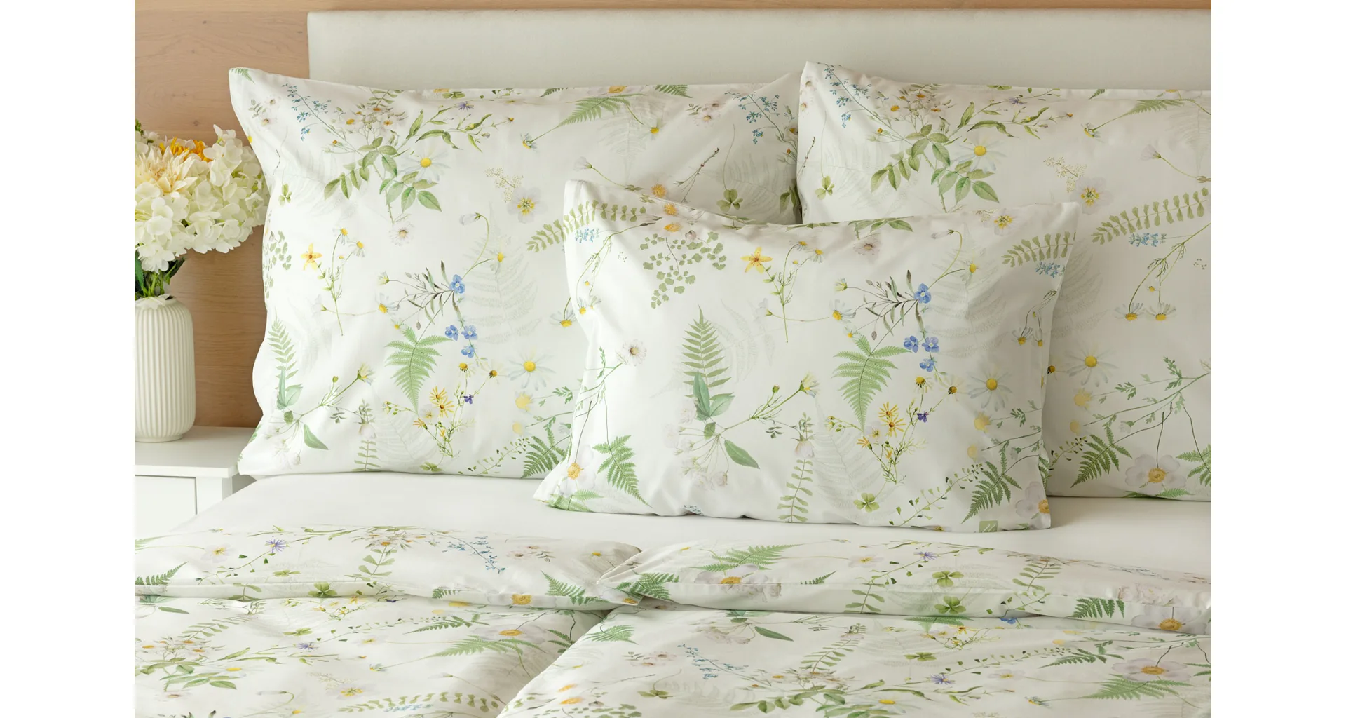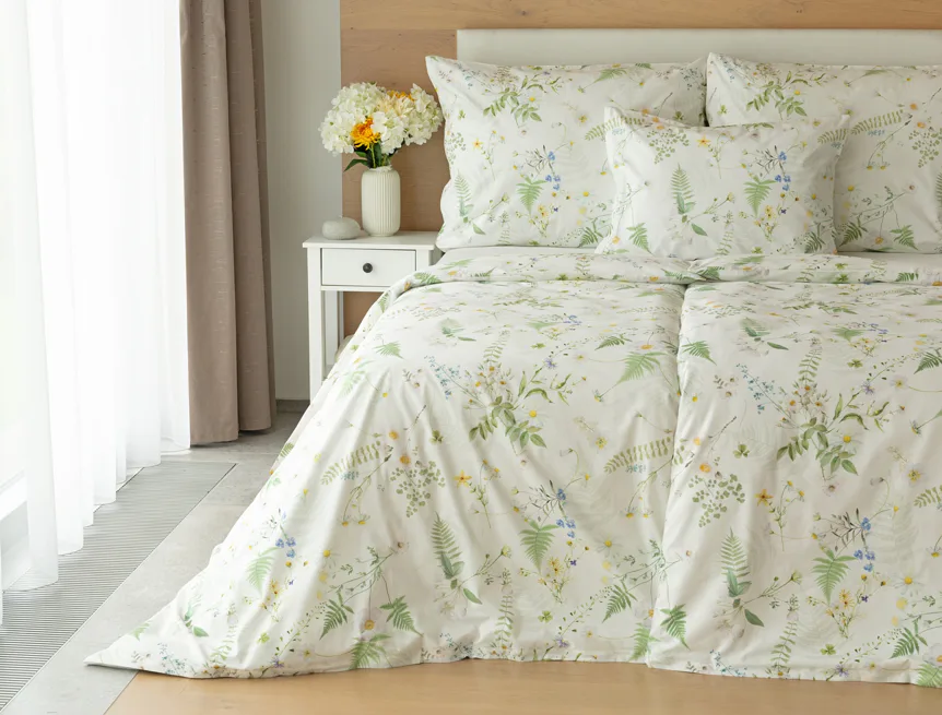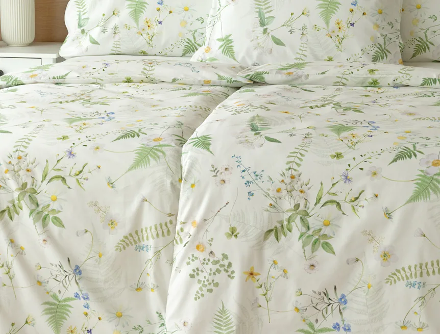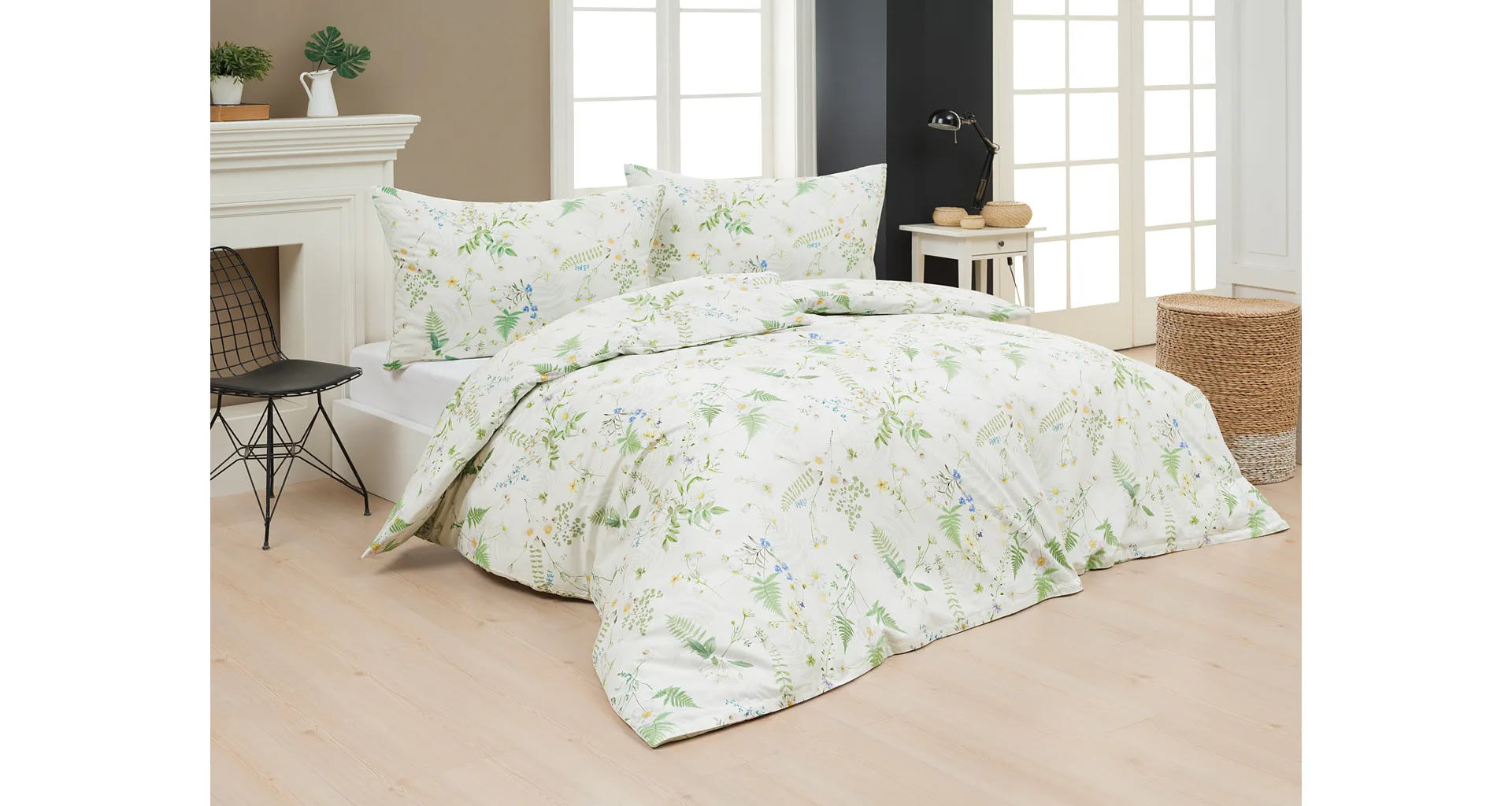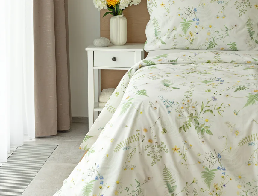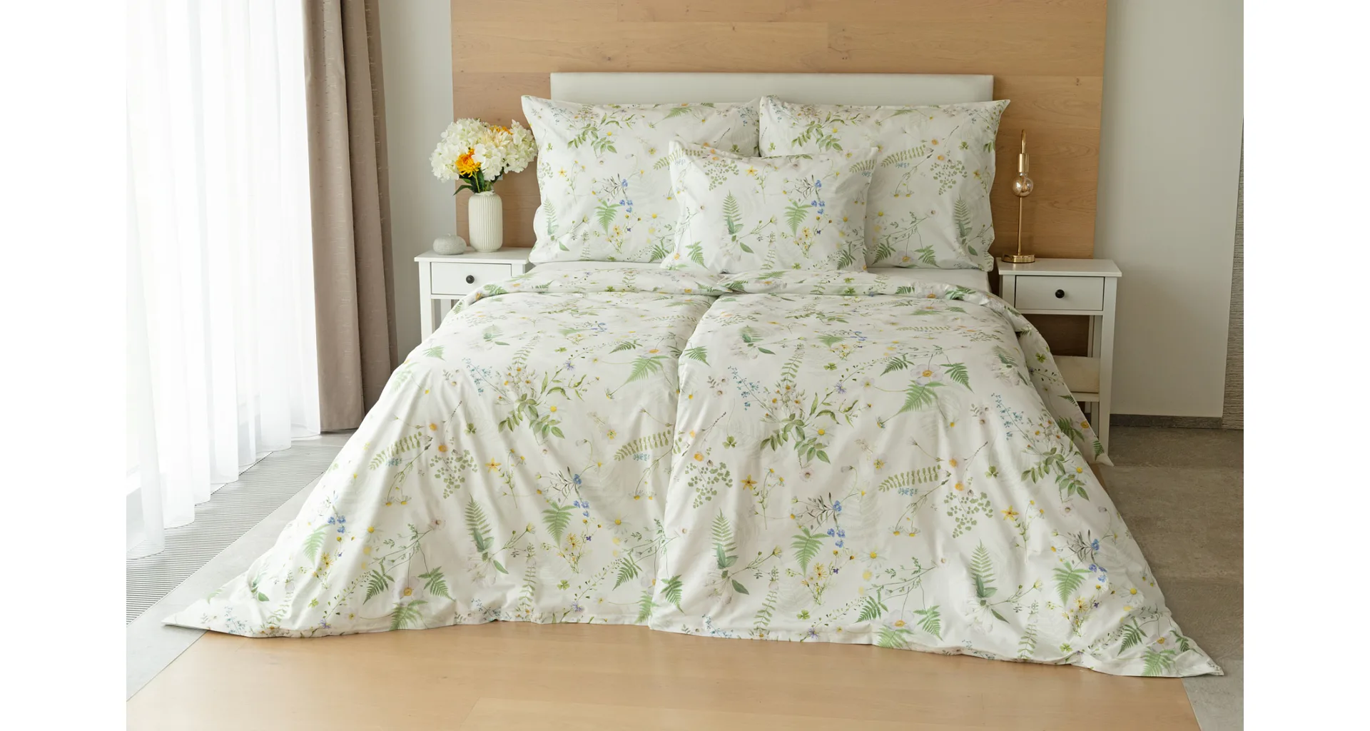Nežný kvetinový motív posteľného prádla Aria si zaslúži vašu pozornosť. Jemné lúčne kvety, ktoré sú rôzne poprepletané vynikajú na bielom podklade a pôsobia nesmierne čistým dojmom. Dokonalá jarná sviežosť. Vďaka najmodernejšej digitálnej tlačovej technológii vyniká každý kvet v precíznom detaile.