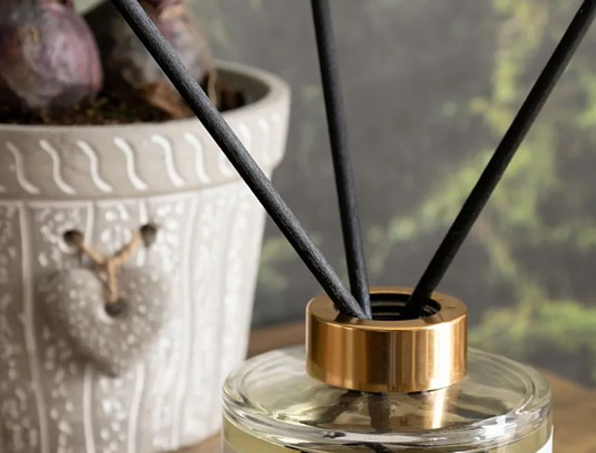 Opatrně sejměte víčko difuzéru a vložte ratanové tyčinky. Čím více tyčinek použijete, tím bude aroma intenzivnější. Tyčinky vložené do difuzéru doporučujeme po týdnu či 14 dnech obrátit, prodloužíte tak životnost výrobku.