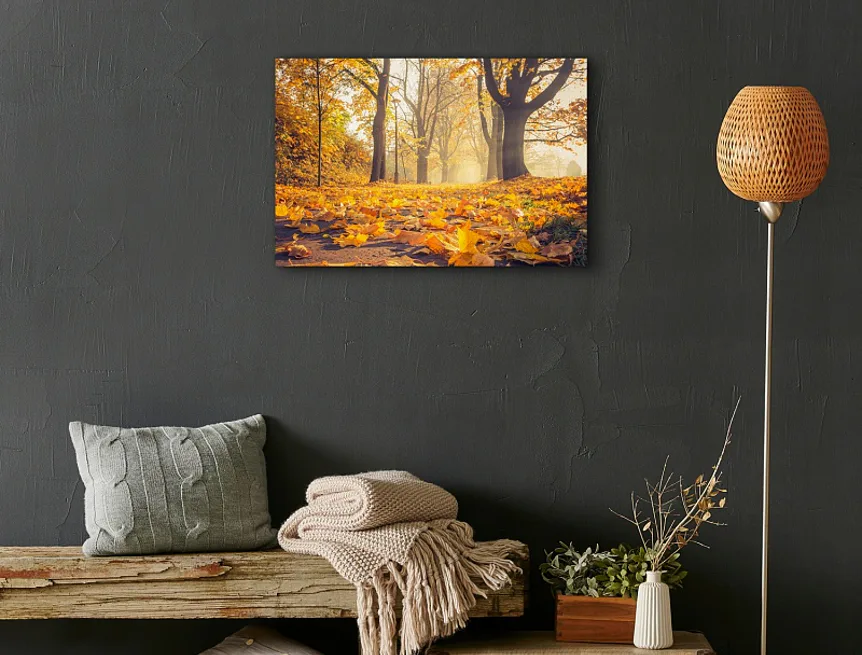 Dodajte interiéru nevšednú atmosféru s obrazom Autumn Road. Vzor obrazu je vytlačený na prémiovom bavlnenom plátne s nepravidelnou štruktúrou canwas PowerSol Satin. Povrch je odolný voči pretrhnutiu a dodáva plátnu zamatový vzhľad. Obraz dodávame už napnutý v drevenom ráme, je opatrený závesom pre umiestnenie na stenu.