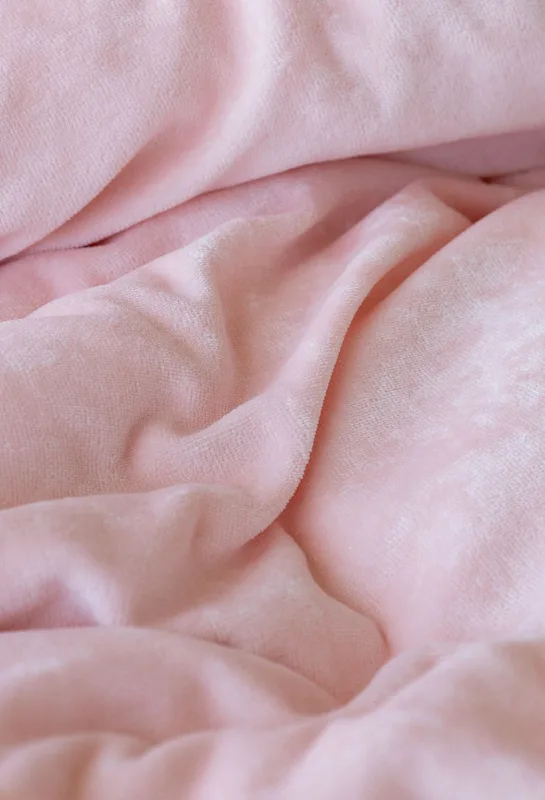 Bavlnený mikroplyš našej výroby sa pýši vysokým podielom bavlny (80%), kedy ostávajúcich 20% PE tvorí spodnú štruktúru pružnej tkaniny. Velúrové obliečky sú nenáročné na údržbu a nevyžadujú žehlenie. Kolekcia velúrových obliečok spĺňa kritériá medzinárodnej certifikácie Oeko-Tex Standard 100.