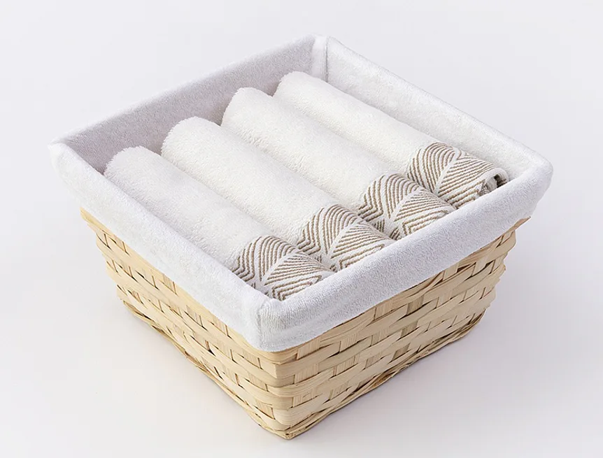 Košík s textilnou vsadkou je súčasťou balenia. Uteráky sú opatrené pútkom.