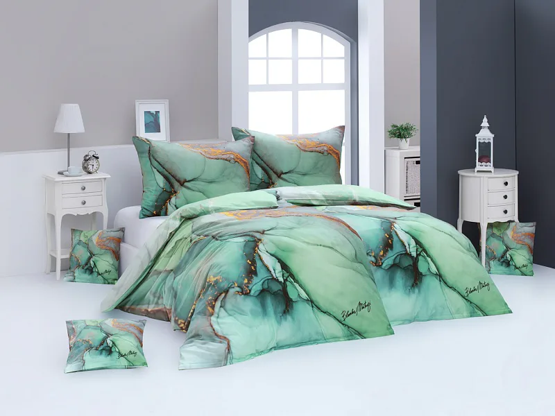 Obliečky v prevedení luxusného bavlneného mako saténu sú tlačené najmodernejšou digitálnou tlačou, ktorá zaisťuje verný detail presne podľa autorkinho zámeru. Obliečky sú vybavené podpisom Blanky Matragi - signatúra nechýba na prikrývke, vankúši ani na malom vankúšiku. Motív z oboch strán obliečky zodpovedá fotografii.