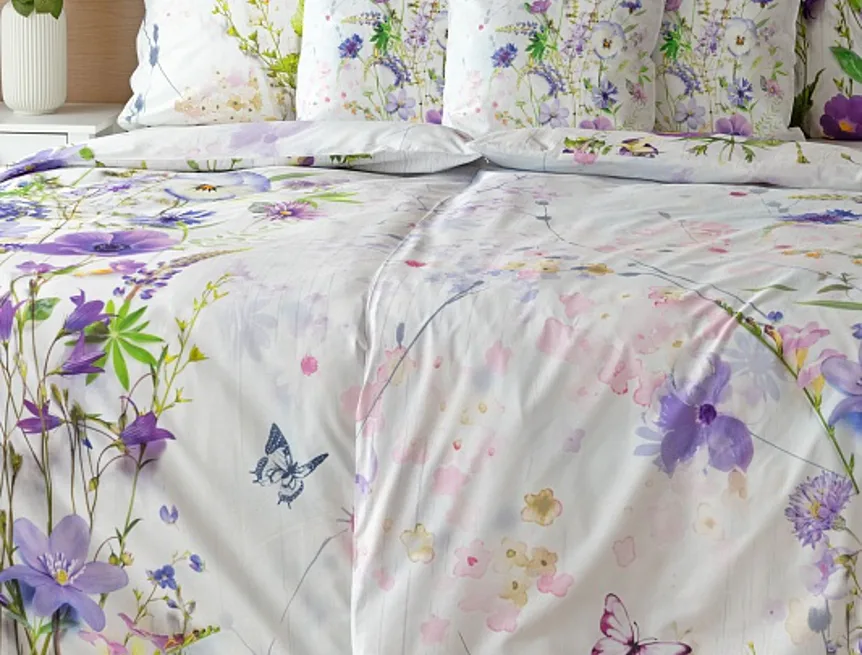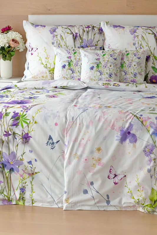 S posteľnými obliečkami Bluebell vaša spálňa rozkvitne. Nežný motív lúčneho zvončeka doplnený drobnými motýlikmi vyniká na bielom podklade. Vďaka najmodernejšej digitálnej tlači si vychutnáte každý detail.