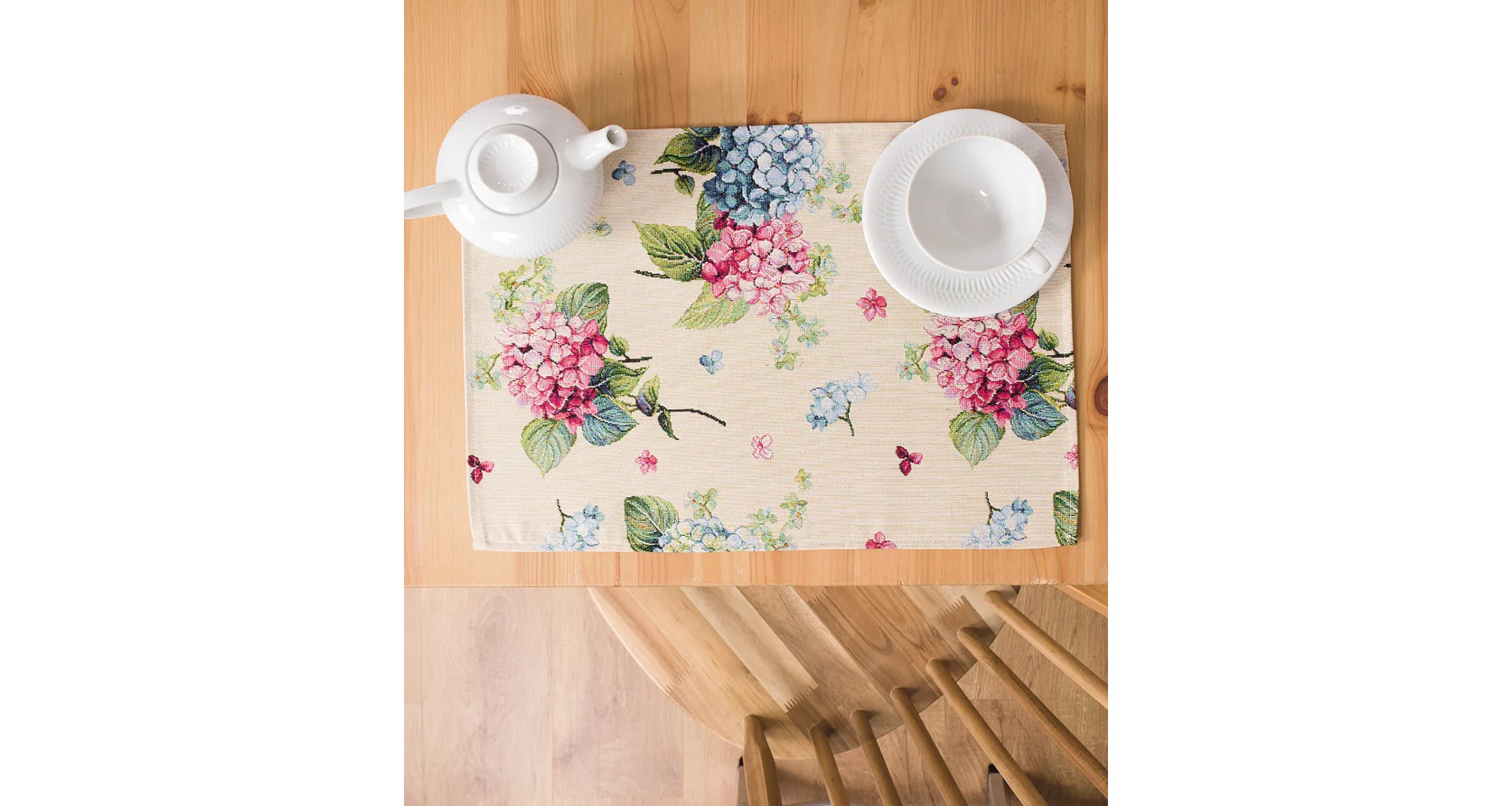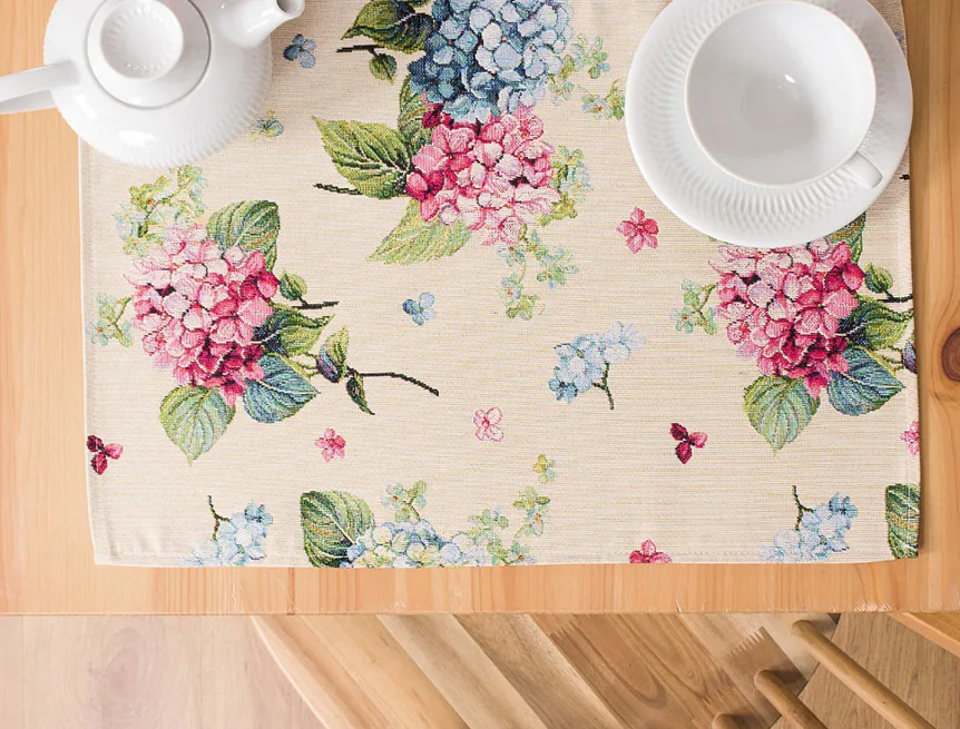 Prestieranie Canio s vytkanými kvetmi hortenzie je originálny a praktický doplnok. Vďaka precíznemu spracovaniu a odolnému materiálu si rýchlo nájde nenahraditeľné miesto vo vašej kuchyni.