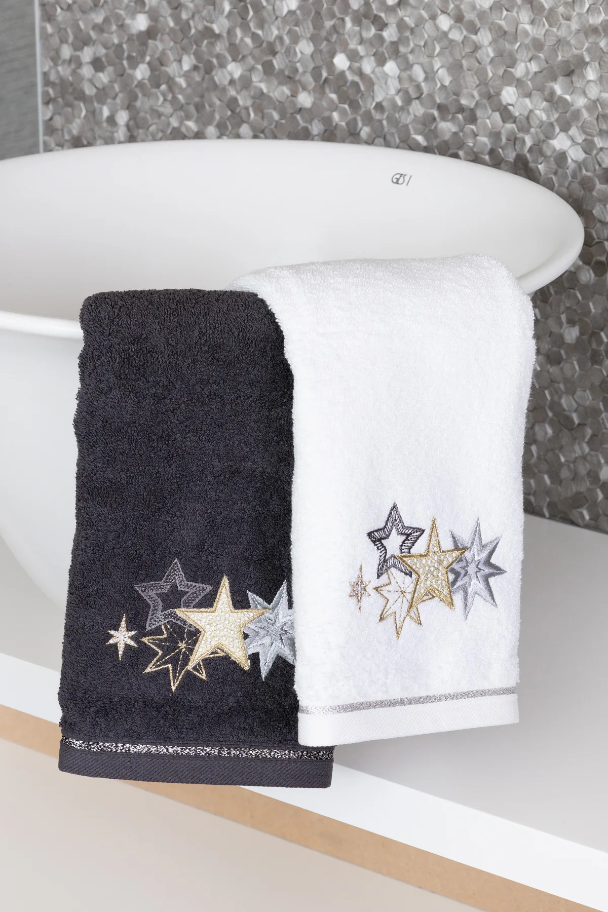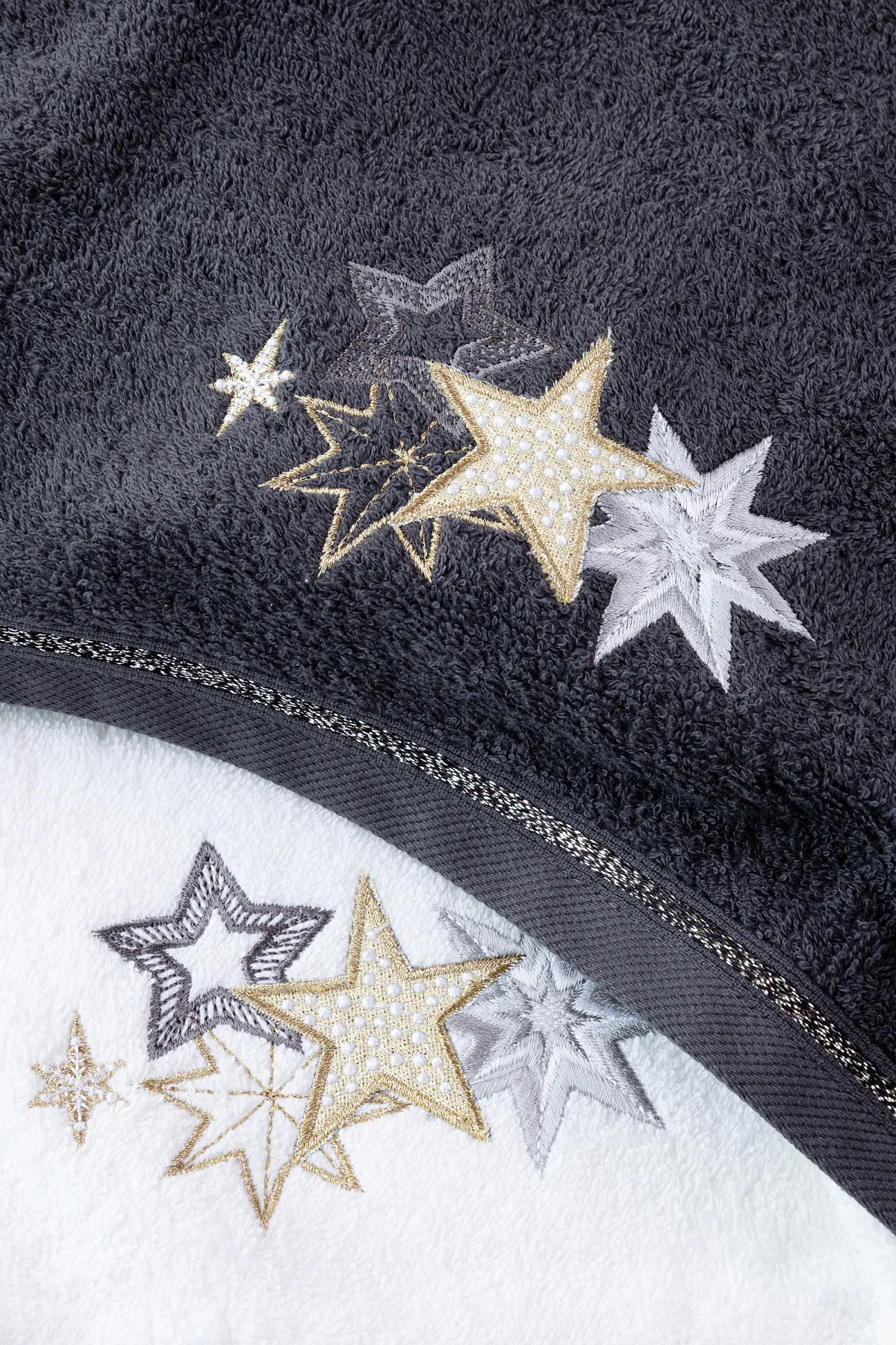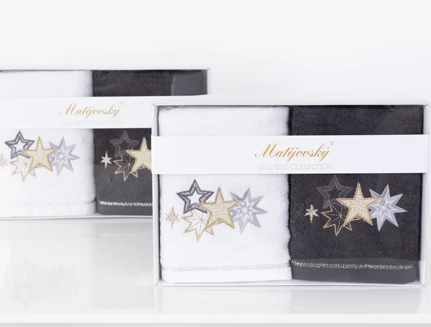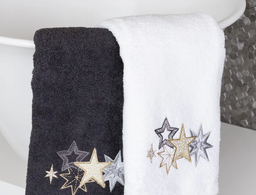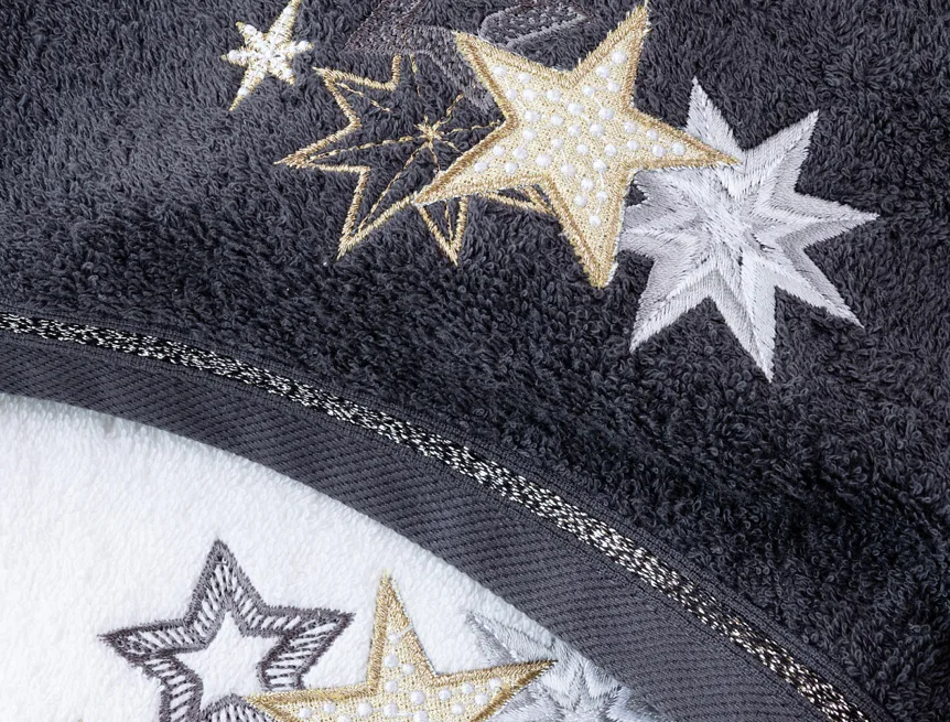 • antracitově šedý ručník, výšivka s motivem hvězdiček
