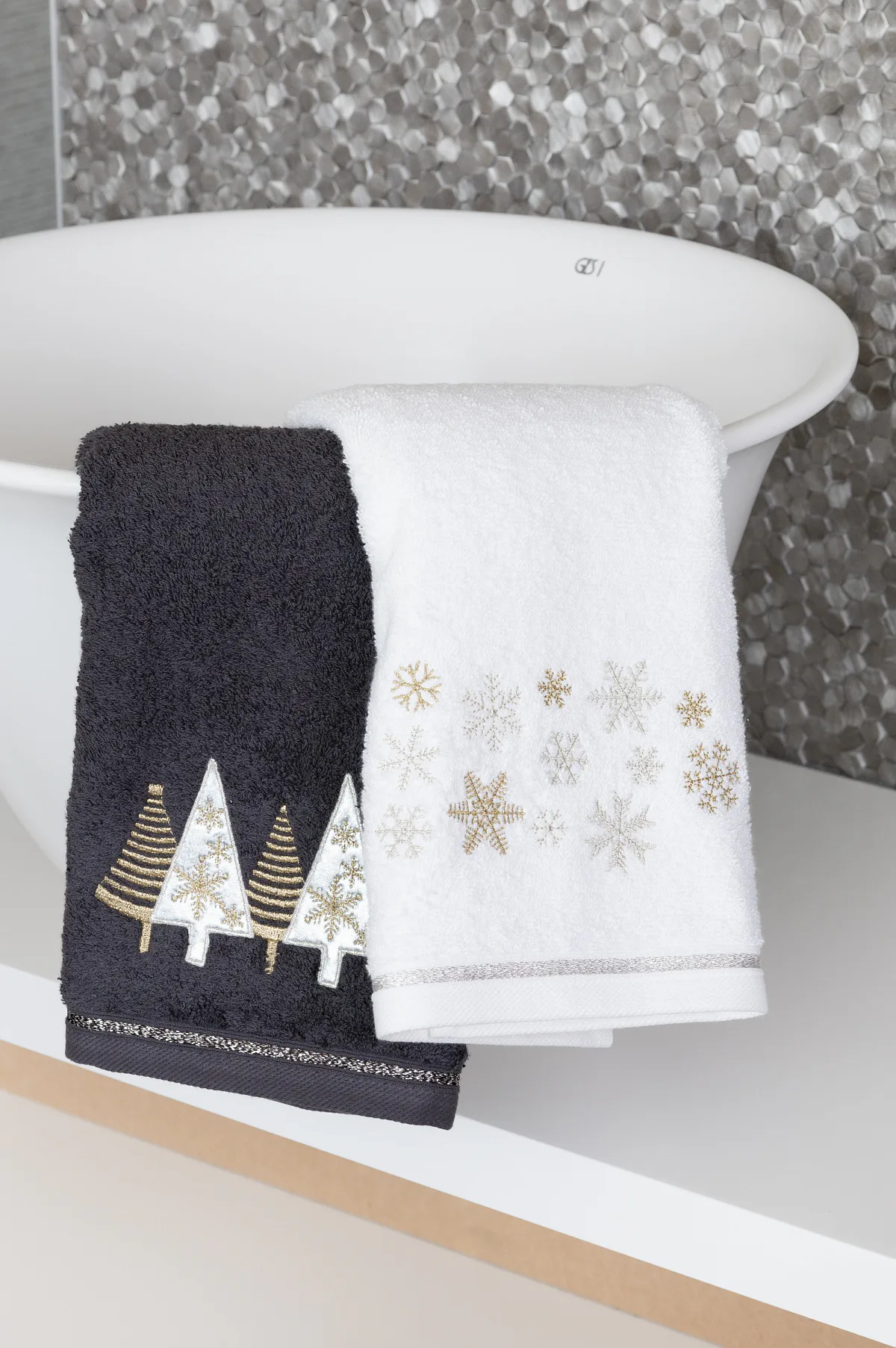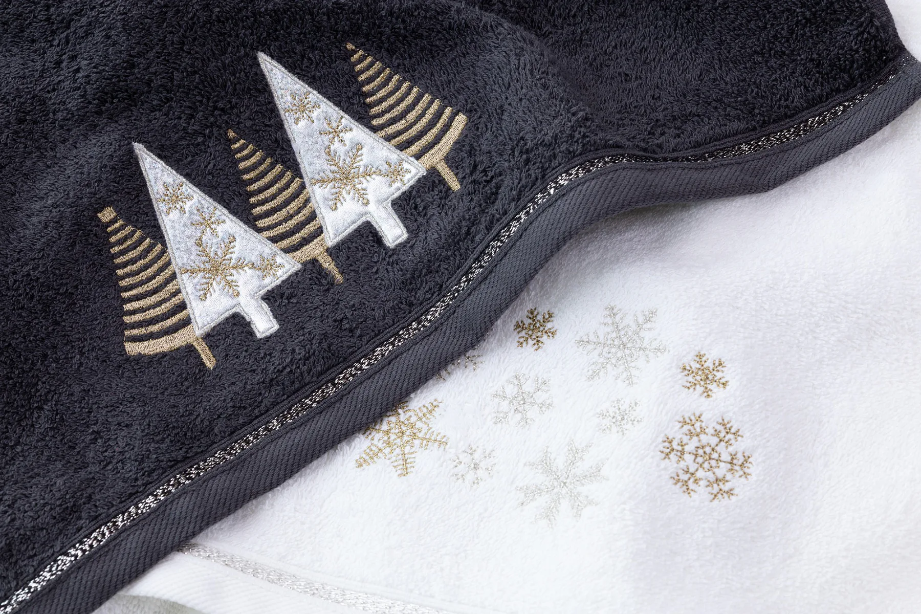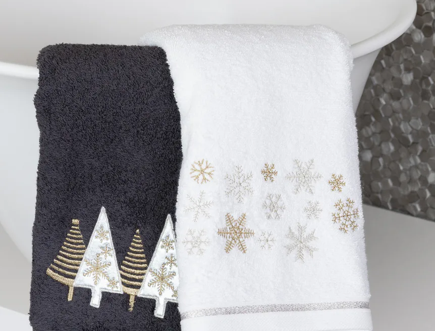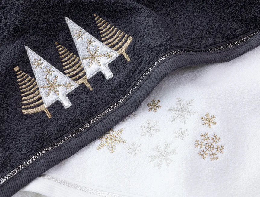 • antracitově šedý ručník, výšivka s motivem vánočních stromků