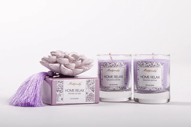 • 1x světle fialový difuzér s vůní levandule, barevně sladěným vonným květem a ozdobným střapcem