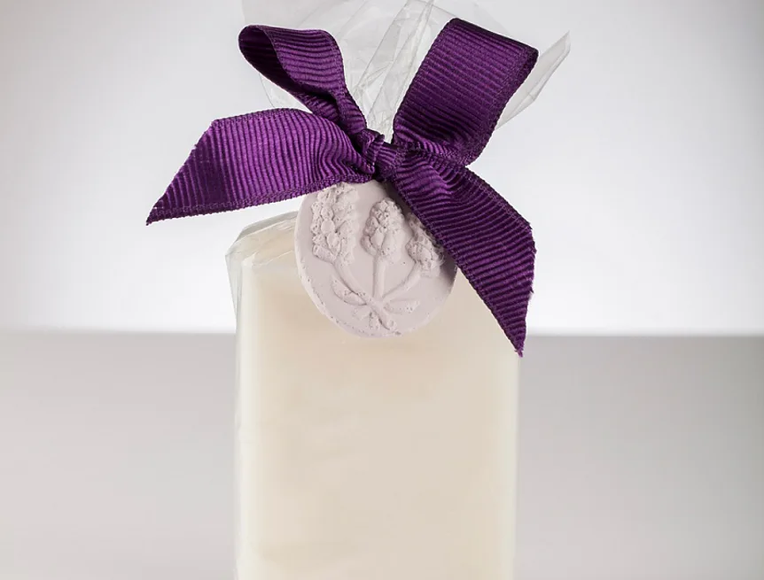 Elegantně zabalené přírodní dárkové mýdlo s ozdobným kamínkem je skvělým tipem na maličkost darovanou od srdce.