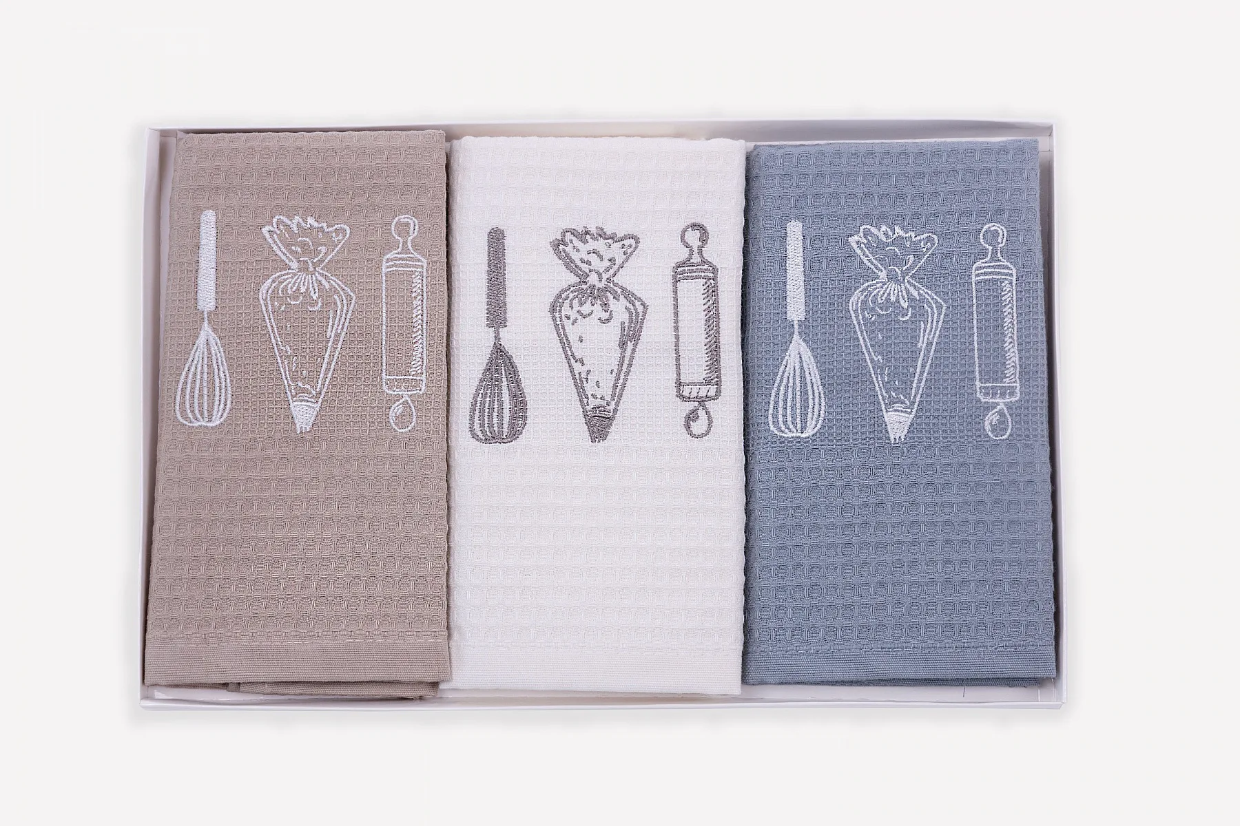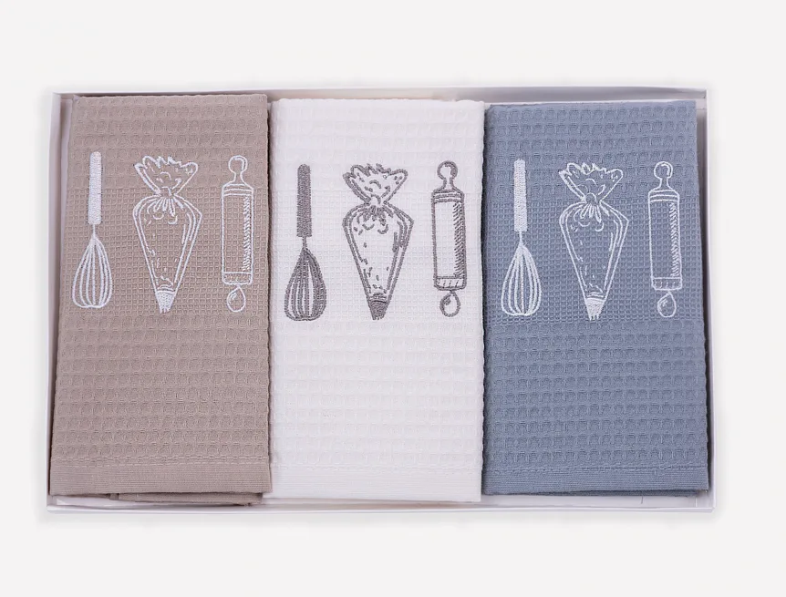 Obsah balení: 3 kusy vaflových utěrek s výšivkou