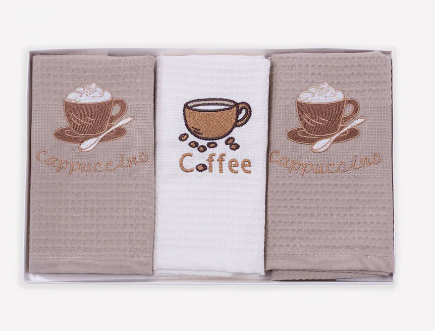 Obsah balení: 3 kusy vaflových utěrek s výšivkou