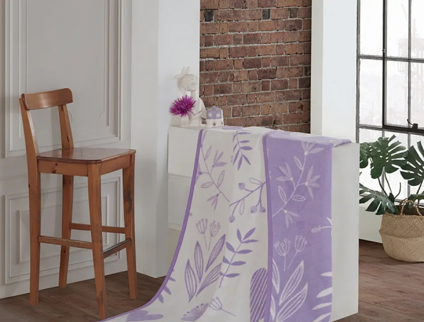 Design: jemný květinový motiv v bílo-fialové kombinaci