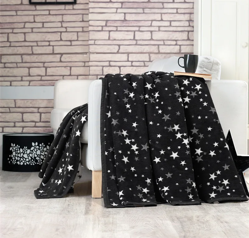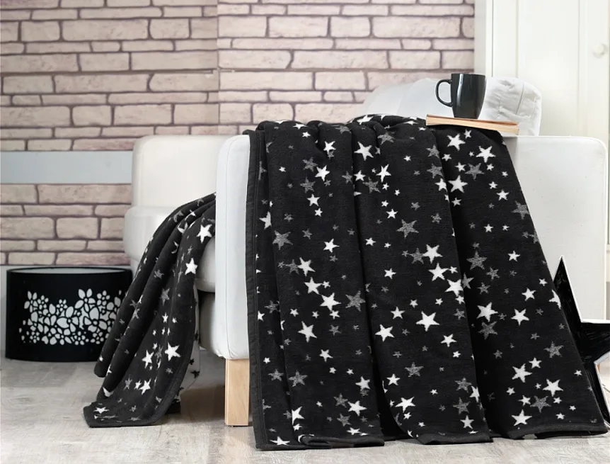 Luxusní bavlněná deka s hustým vlasem, hřejivá a hebká na omak. Nová receptura tkaní je zárukou lehkosti a skvělé prodyšnosti. Deka BLACK NIGHT bude jedinečným doplňkem vašeho domova a nepostradatelným společníkem pro chladné večery. Nadčasový hvězdičkový motiv v černobílém provedení se hodí do každého interiéru. Spodní strana deky je provedena inverzně.