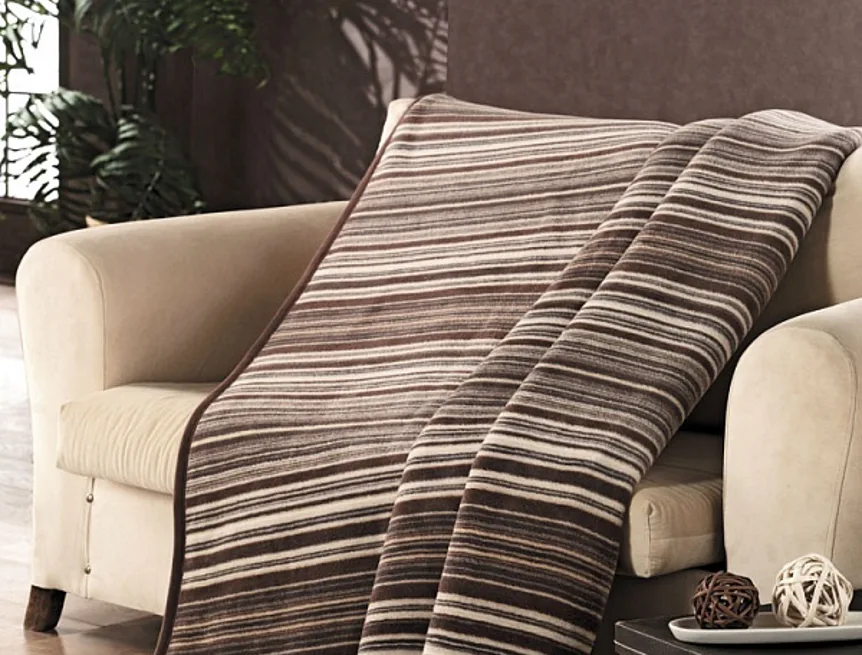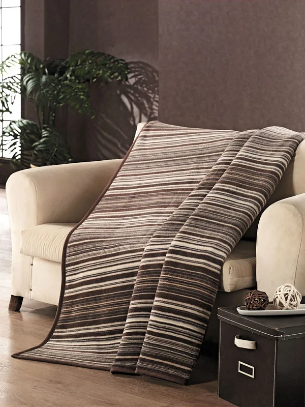 Luxusní deka s hustým vlasem, hřejivá a sametová na omak. Klasický a jednoduše elegantní dezén CORLETO zajistí, že deka bude jedinečným doplňkem Vašeho domova a nepostradatelným společníkem pro chladné večery. Deku můžete elegantně využít i jako ozdobný přehoz. Deka je olemována tmavě hnědou lemovkou, kombinuje jednoduchý proužkovaný vzor v přírodních tónech.