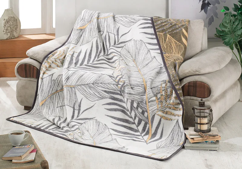 Deku můžete elegantně využít i jako ozdobný přehoz. Deka, která se pyšní inverzním barevným provedením, je po celém obvodu olemována barevně sladěnou lemovkou.