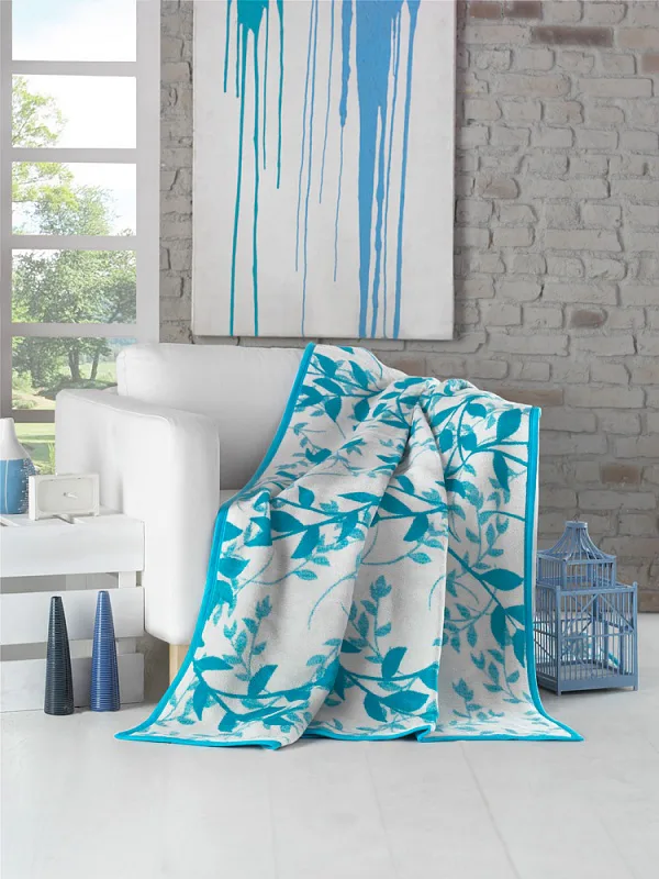 Luxusní bavlněná deka s hustým vlasem, hřejivá a hebká na omak. Atraktivní přírodní dezén EMBER bude jedinečným doplňkem vašeho domova a nepostradatelným společníkem nejen pro chladné večery. Deka je laděna do petrolejově zelených tónů na přírodním bílém podkladu. Druhá strana deky je provedena inverzně (světlý motiv v tmavé ploše).