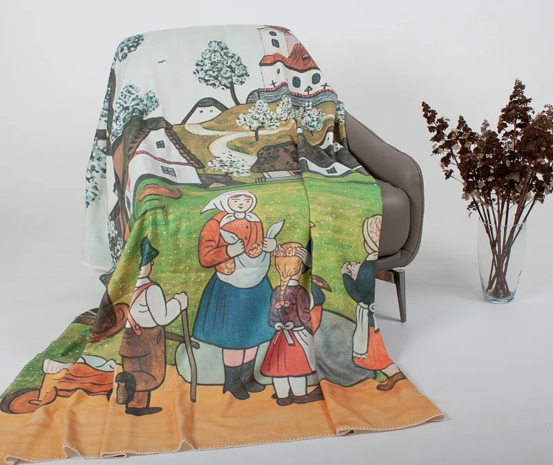 Lehké jako vánek, úžasně hebké a příjemně hřejivé jsou nové designové plédy s digitálním potiskem. Pléd Jaro na vsi s kouzelnými kresbami Josefa Lady vám zpříjemní chladné zimní večery. Můžete jej použít také jako ozdobný přehoz nebo věnovat svým blízkým jako originální dárek.