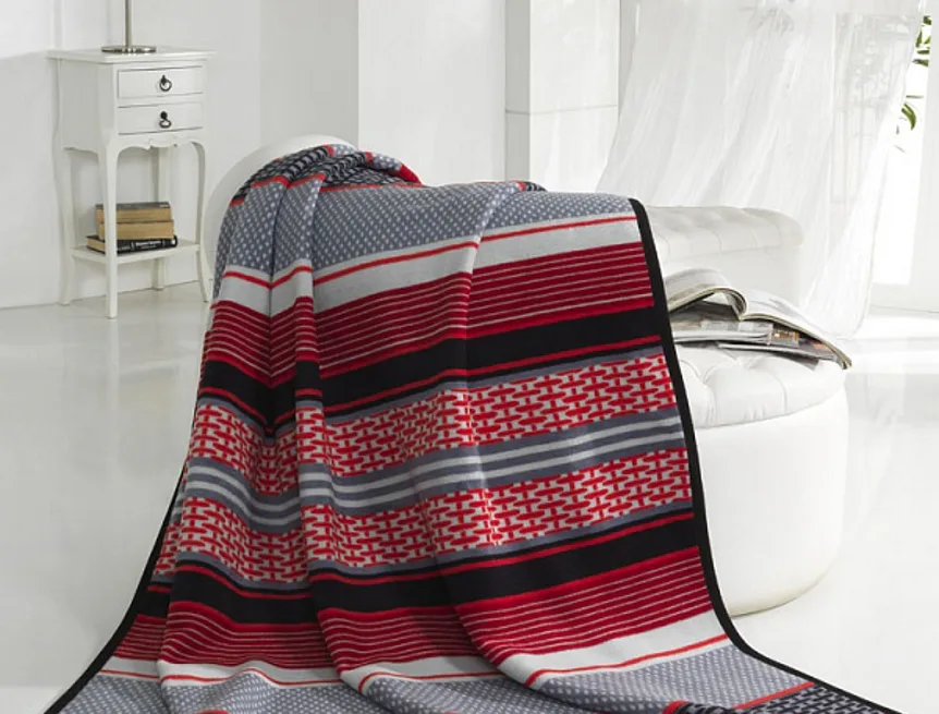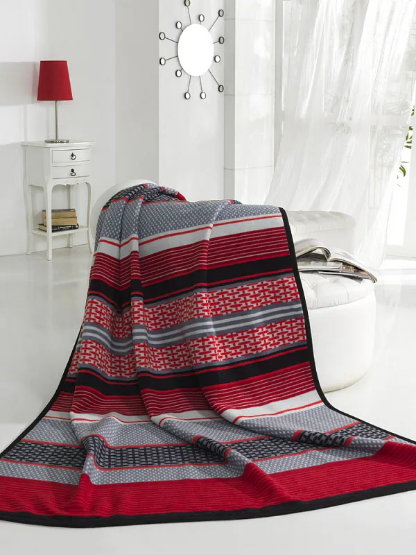 Luxusní deka s hustým vlasem, hřejivá a sametová na omak. Atraktivní dezén LAZZARO zajistí, že deka bude jedinečným doplňkem vašeho domova a nepostradatelným společníkem pro chladné večery. Kombinuje geometrické linie v barvách šedé, černé a výrazné červené.