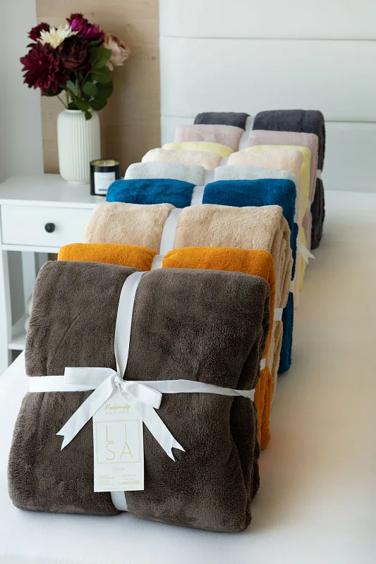 Se sametově jemnou dekou Lisa se pohodové chvíle lenošení a relaxace stanou ještě příjemnější. Nová kolekce dek, do kterých je radost se zachumlat, si vás získá nejen měkoučkým hřejivým materiálem, ale také moderní paletou barevných odstínů.