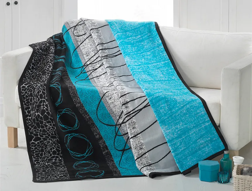 Luxusní bavlněná deka s hustým vlasem, hřejivá a hebká na omak. Oblíbený dezén LOCARNO bude jedinečným doplňkem vašeho domova a nepostradatelným společníkem nejen pro chladné večery. Deka je laděna do odstínů tyrkysové, černé a šedé. Druhá strana deky je provedena inverzně.