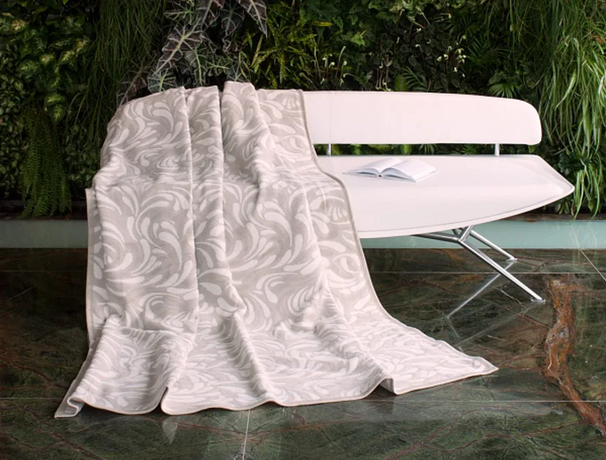Embosovaná deka může sloužit jako nepostradatelný společník pro chladné večery, i jako vkusný bytový doplněk nebo také jako ozdobný přehoz. Deka je olemována krémovou lemovkou.
