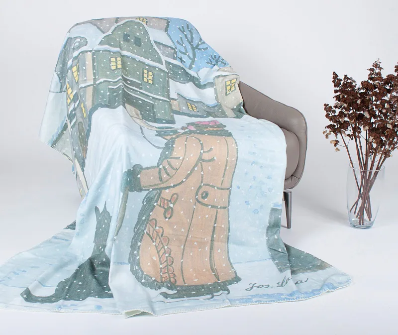 Pléd je opatřen digitálním potiskem pouze z jedné strany, zadní strana deky je bílá. Okraje zdobí decentní obšití v bílé barvě.