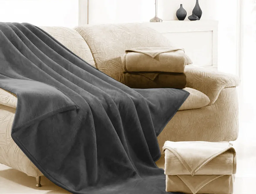 Jednobarevnou deku můžete elegantně využít i jako ozdobný přehoz. Deka je olemována lemovkou.