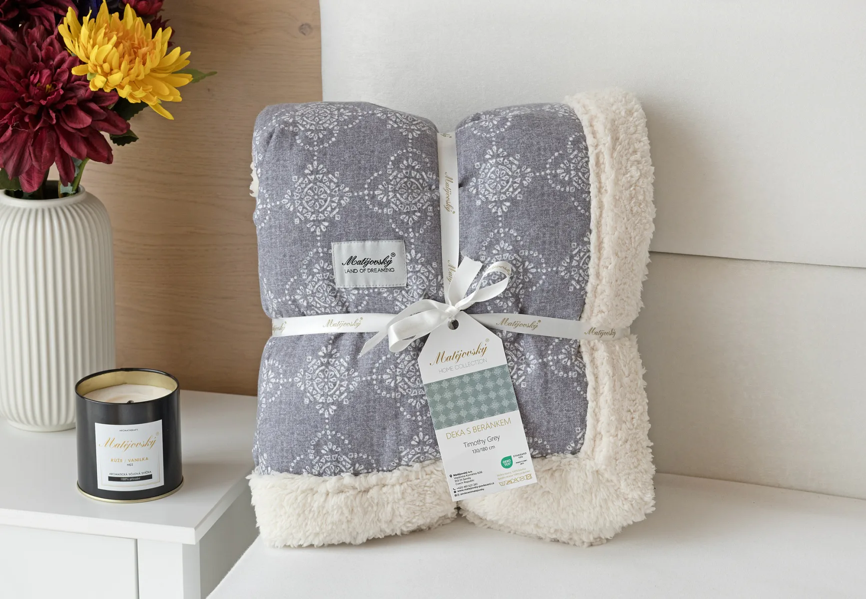 Díky pečlivě vybraným motivům, které lze kombinovat s ložním povlečením a dalšími bytovými doplňky, nesmí beránková deka Timothy Grey chybět ve vaší domácí oáze klidu a pohody.