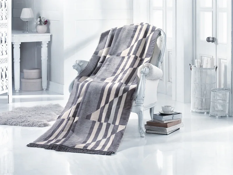 Deku můžete elegantně využít i jako ozdobný přehoz. Deka je olemována lemovkou v barvě světle hnědé (bez třásní).