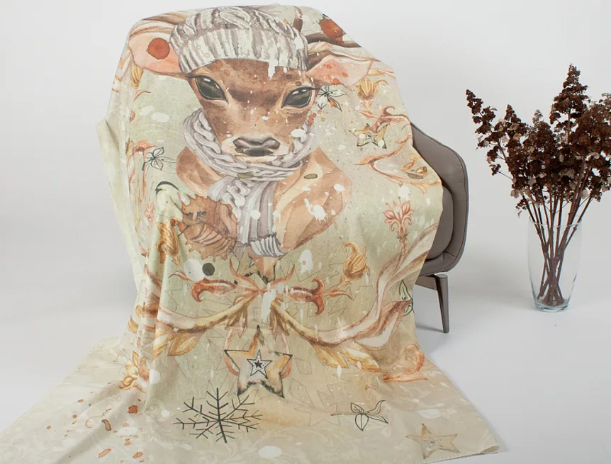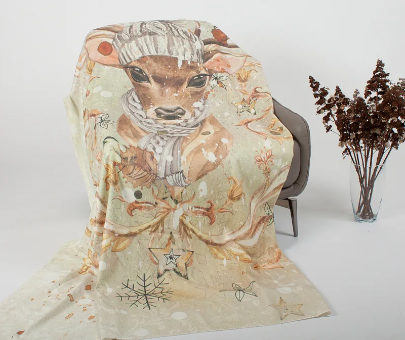 Pléd je opatřen digitálním potiskem pouze z jedné strany, zadní strana deky je bílá. Okraje zdobí decentní obšití v bílé barvě.