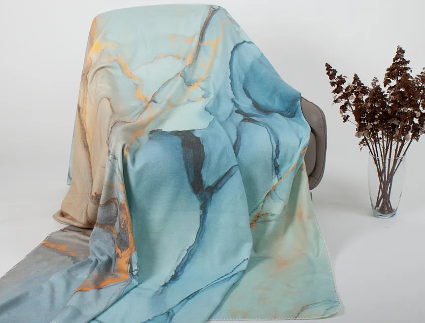 Pléd je opatřen digitálním potiskem pouze z jedné strany, zadní strana deky je bílá. Okraje zdobí decentní obšití v bílé barvě.