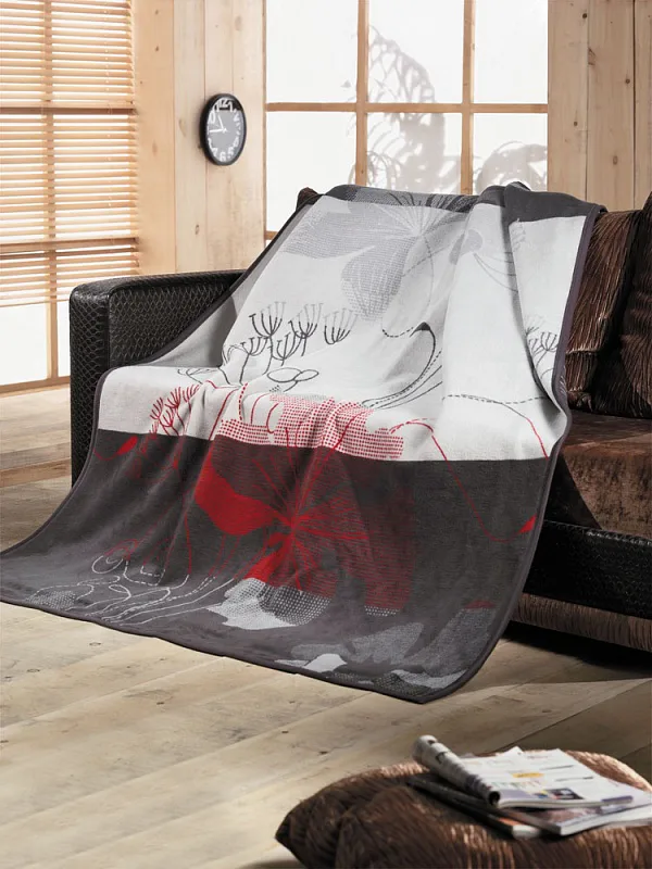 Exkluzivní deka s hustým vlasem, hřejivá a sametová na omak. Atraktivní dezén VERONA je zárukou, že deka bude jedinečným doplňkem vašeho domova a nepostradatelným společníkem pro chladné večery. Nápaditý florální vzor v červené barvě se doplňuje s odstíny šedé.