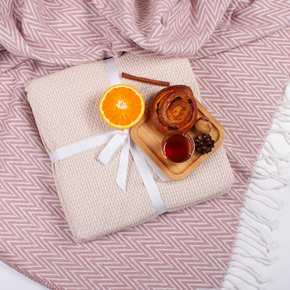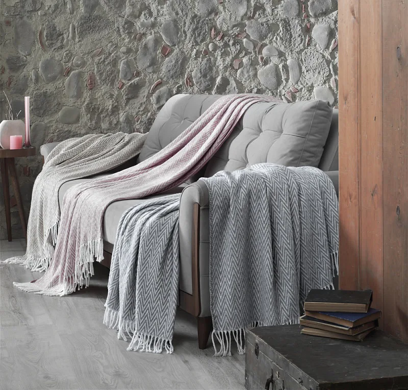 Stylové deky jsou nezbytnou součástí každého interiéru. Inspirujte se novou kolekcí hebkých plédů. Atraktivní severský "cikcakový" vzor a dokonale sladěné pastelové odstíny přírodní bílé a starorůžové v kombinaci s jemným povrchem z přírodního materiálu přímo svádí k zachumlání.
