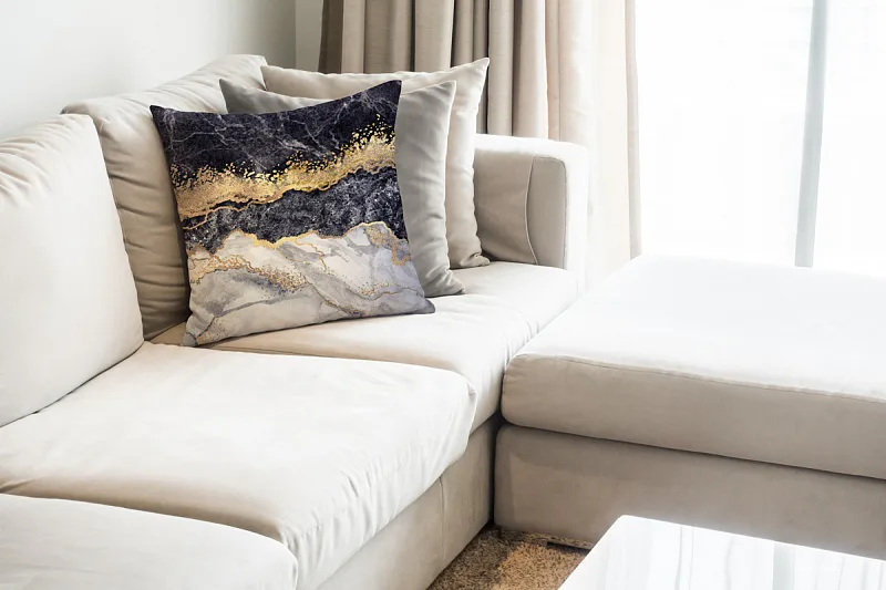 Exkluzivní kolekce designových dekoračních povlaků ze 100% bavlny v provedení luxusního saténu s hustou a pevnou strukturou přináší originální vzor Gold Marble. Nejmodernější digitální tisk zajišťuje krásné barvy a precizní detaily. Povlak o rozměru 50x50 cm je z obou stran stejný a je opatřen komfortním zipovým uzávěrem.