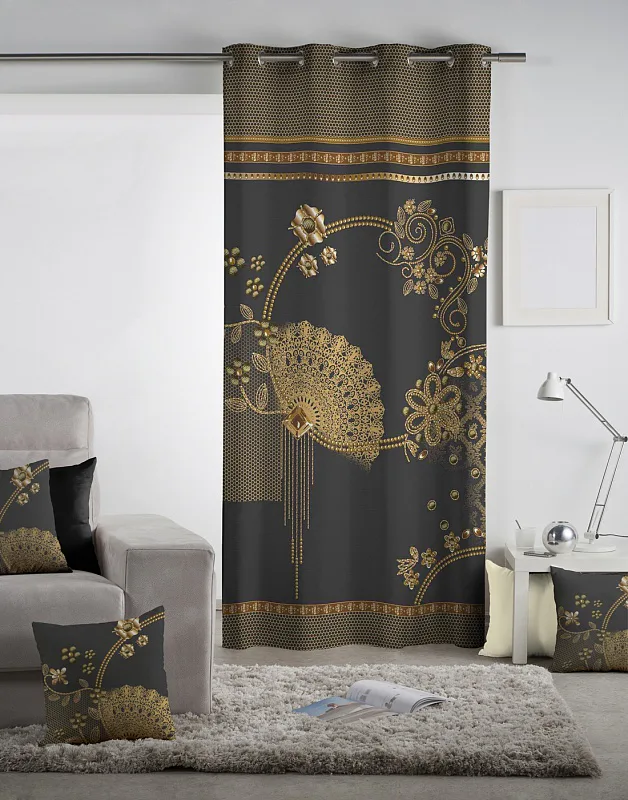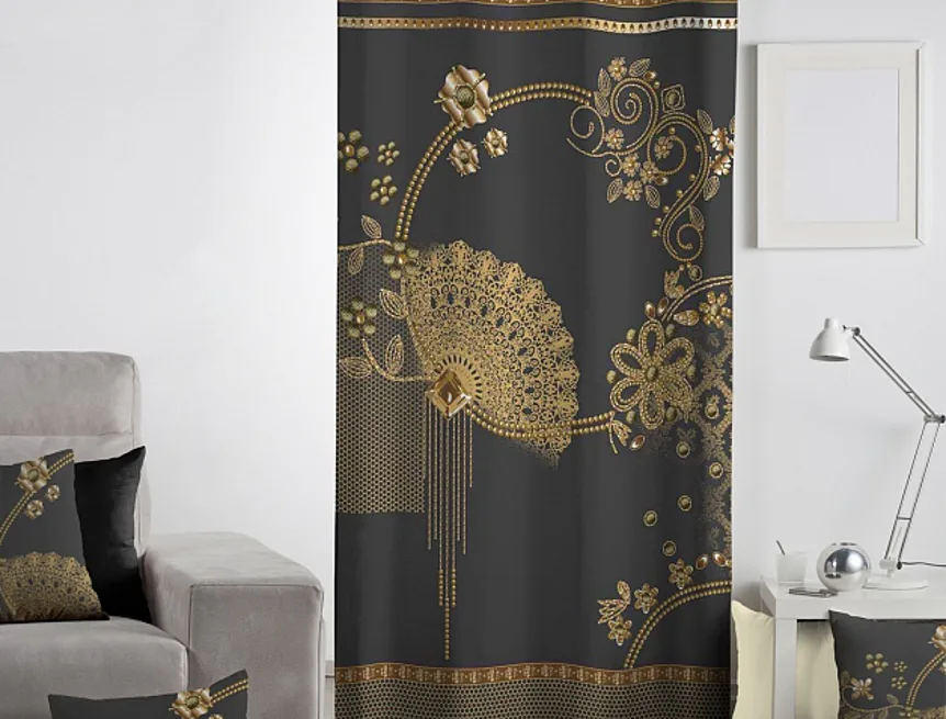 Exkluzivní kolekce dekoračních závěsů přináší mimořádný zážitek a věrné provedení detailu. To vše díky nejmodernější digitální technologii tisku. Doplňte svůj domov elegantním závěsem GOLD. Okouzlující odstíny zlatavé na tmavě šedém podkladu prozáří každý okamžik. Jistě oceníte i látku s velmi hustou a pevnou strukturou, vyrobenou ze 100% bavlny, opatřenou sametovým povrchem. Potisk je jednostranný.