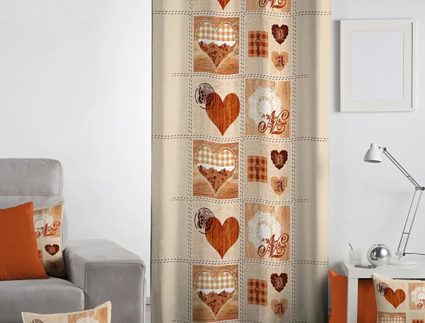 Exkluzivní kolekce dekoračních závěsů přináší mimořádný zážitek a věrné provedení detailu. To vše díky nejmodernější digitální technologii tisku. Nyní se můžete doma cítit jako v romantickém příběhu prostřednictvím oblíbeného motivu srdcí závěsu HEART. Okouzlující odstíny cihlově oranžové v kombinaci s béžovou prozáří každý okamžik. Jistě oceníte i látku s velmi hustou a pevnou strukturou, vyrobenou ze 100% bavlny, opatřenou sametovým povrchem. Potisk je jednostranný.