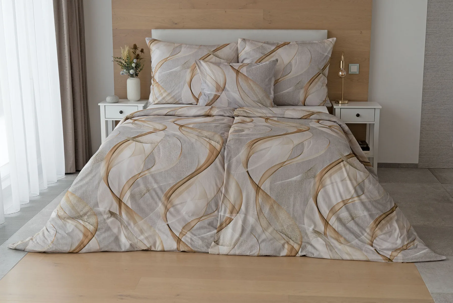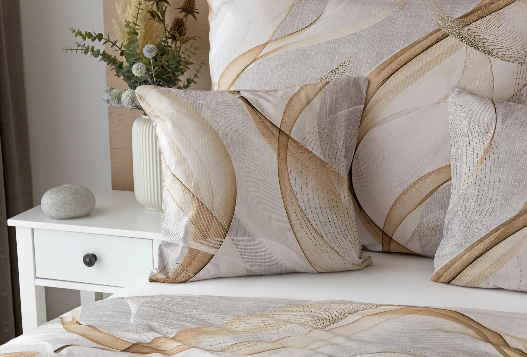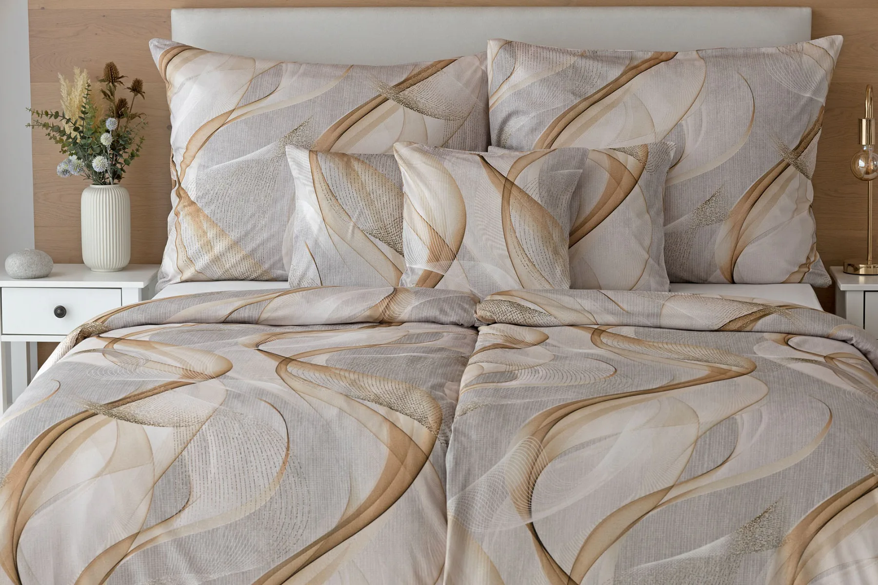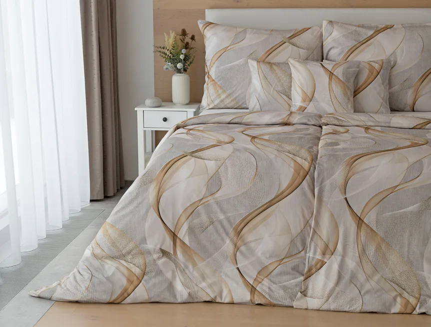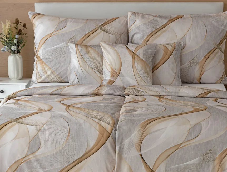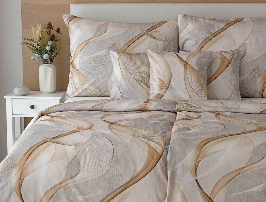 Pre novú kolekciu posteľných obliečok Mako jersey sme starostlivo vybrali motívy, ktoré sa tomuto pružnému materiálu hodia. Vzor Delight s jemným geometrickým motívom v palete šedých a béžových tónov vnesie do vašej spálne nádych elegancie.