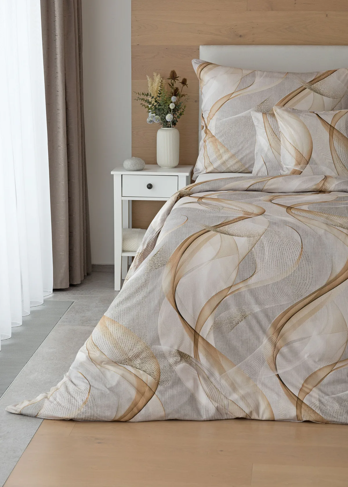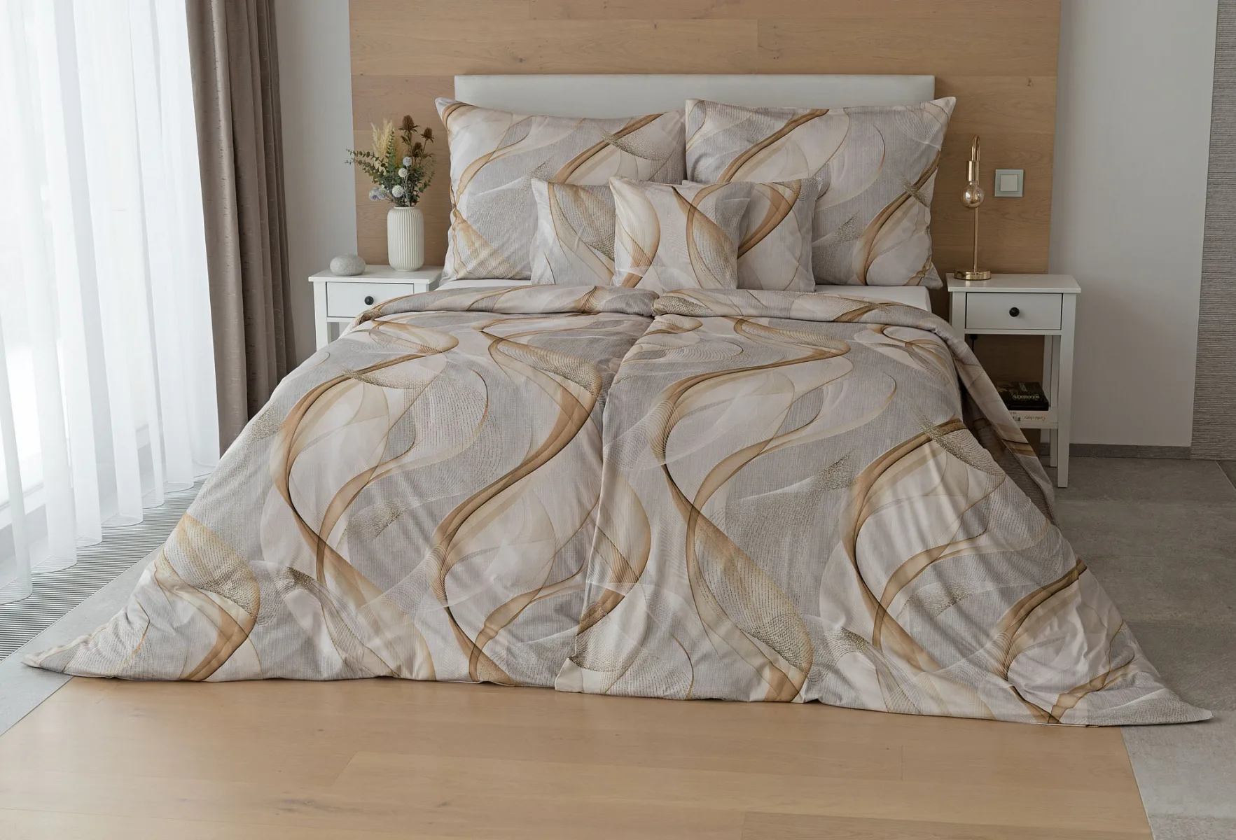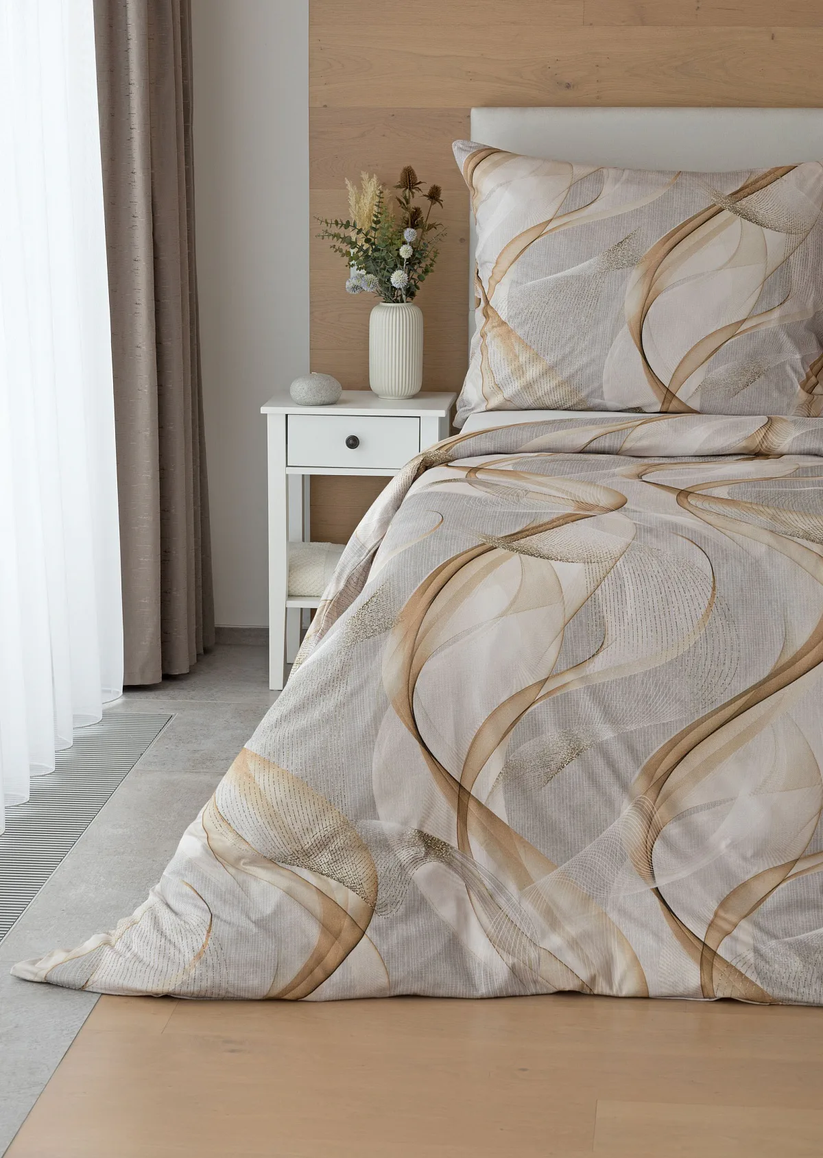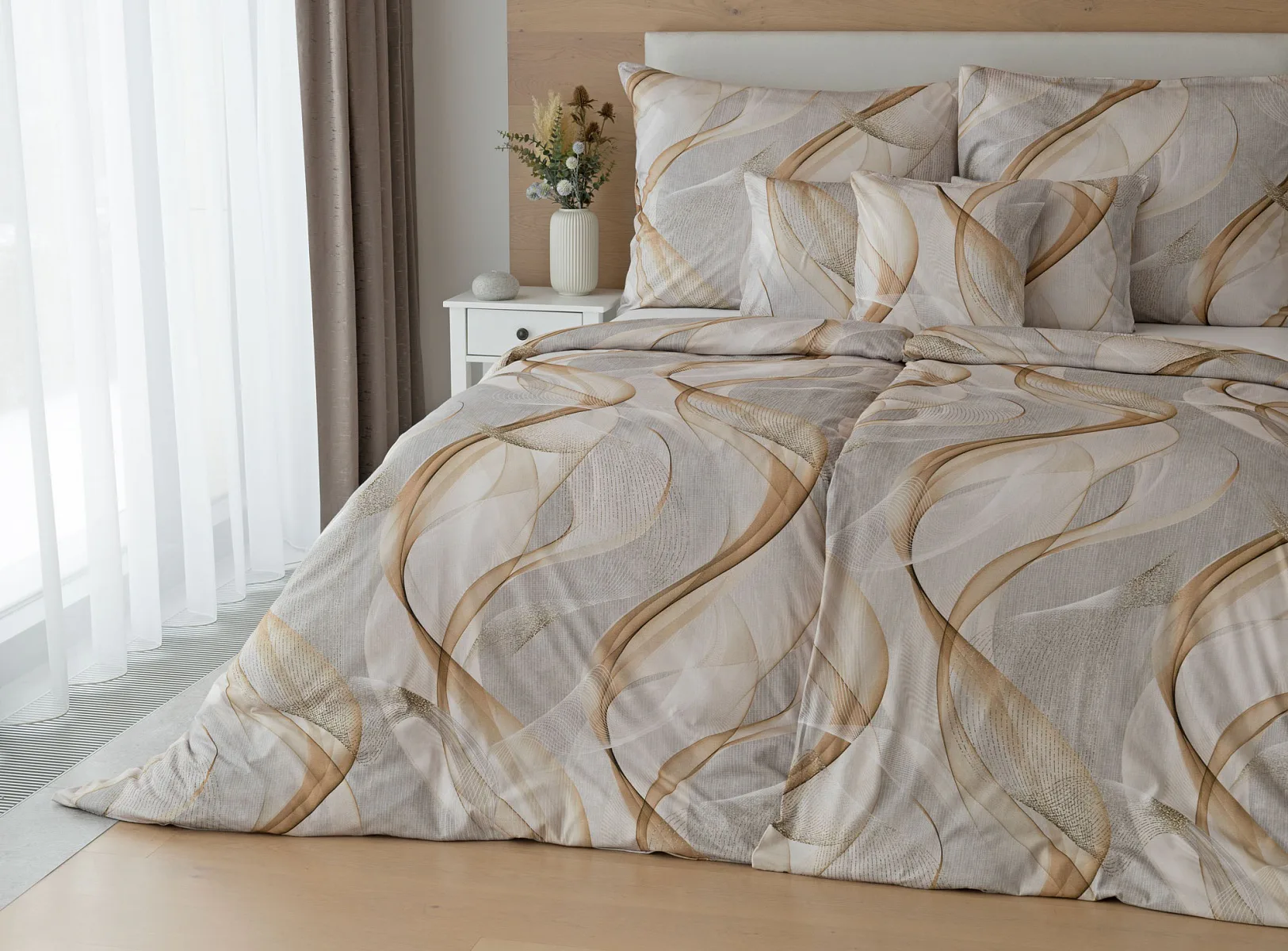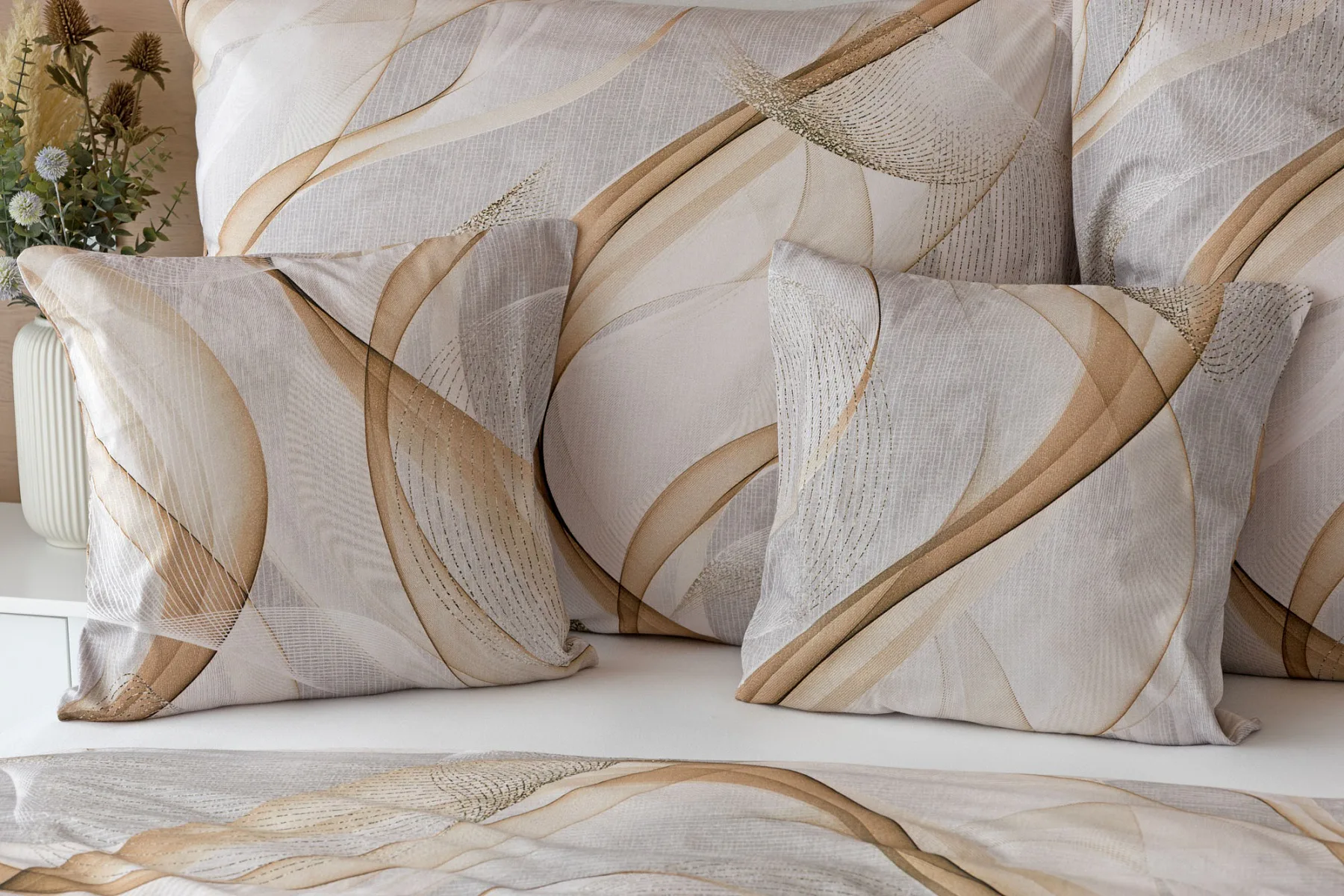 Pre novú kolekciu posteľných obliečok Mako jersey sme starostlivo vybrali motívy, ktoré sa tomuto pružnému materiálu hodia. Vzor Delight s jemným geometrickým motívom v palete šedých a béžových tónov vnesie do vašej spálne nádych elegancie.