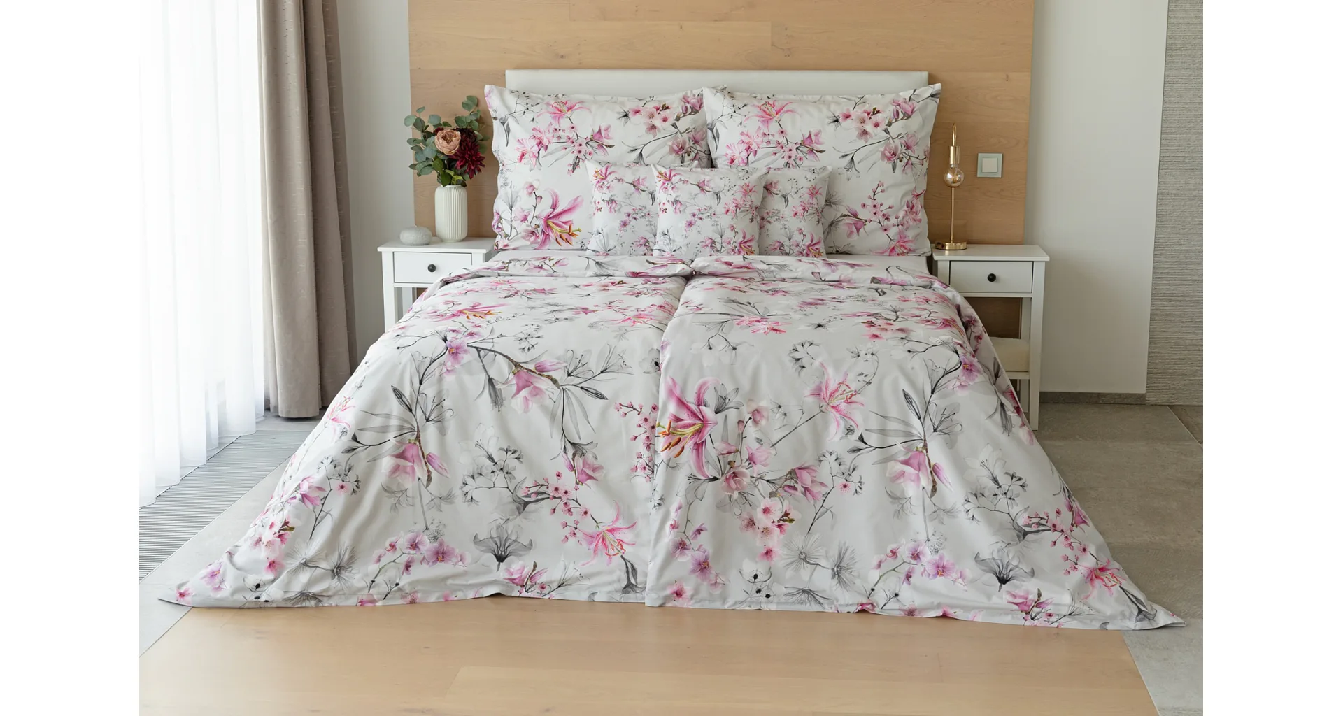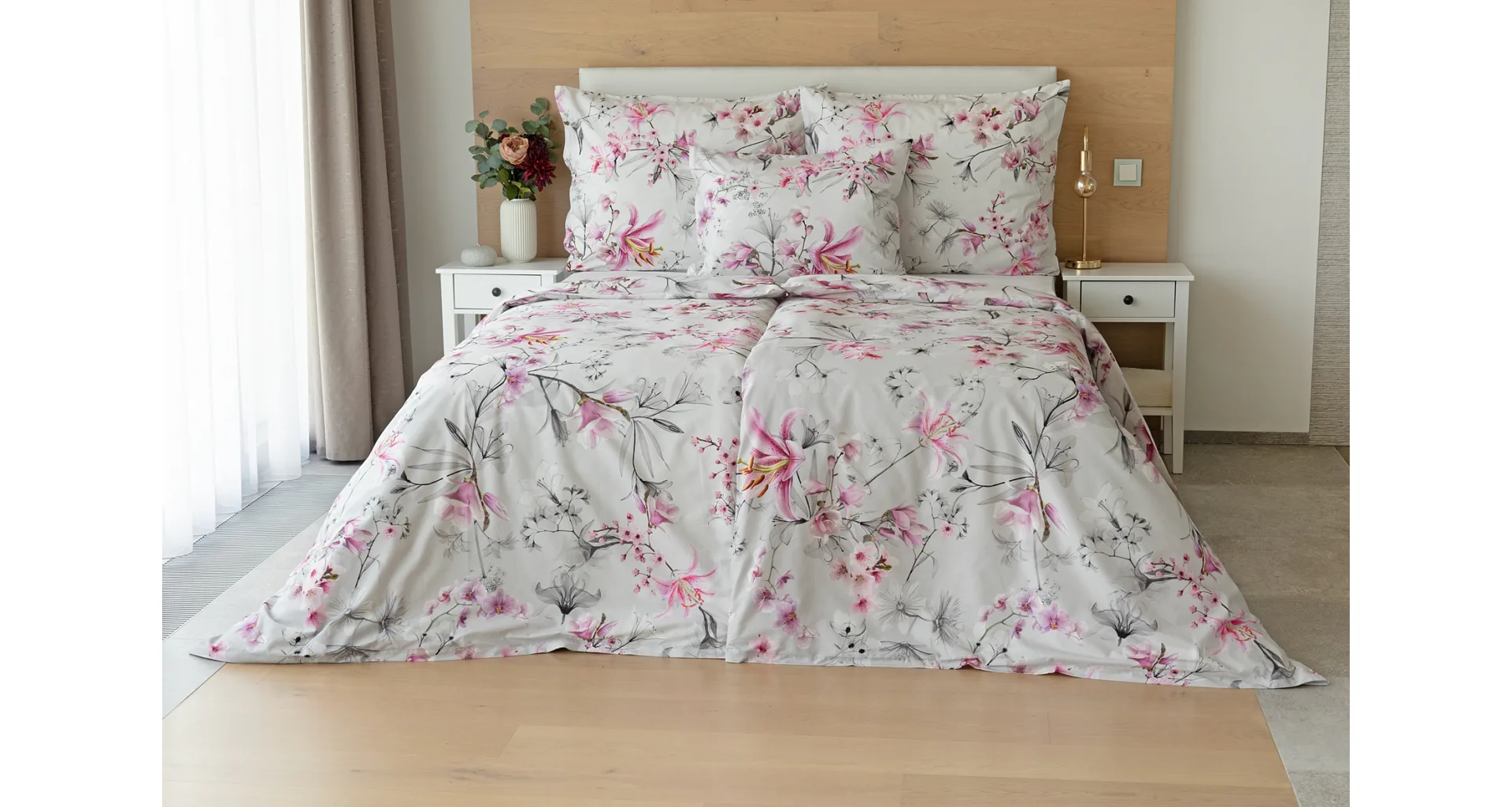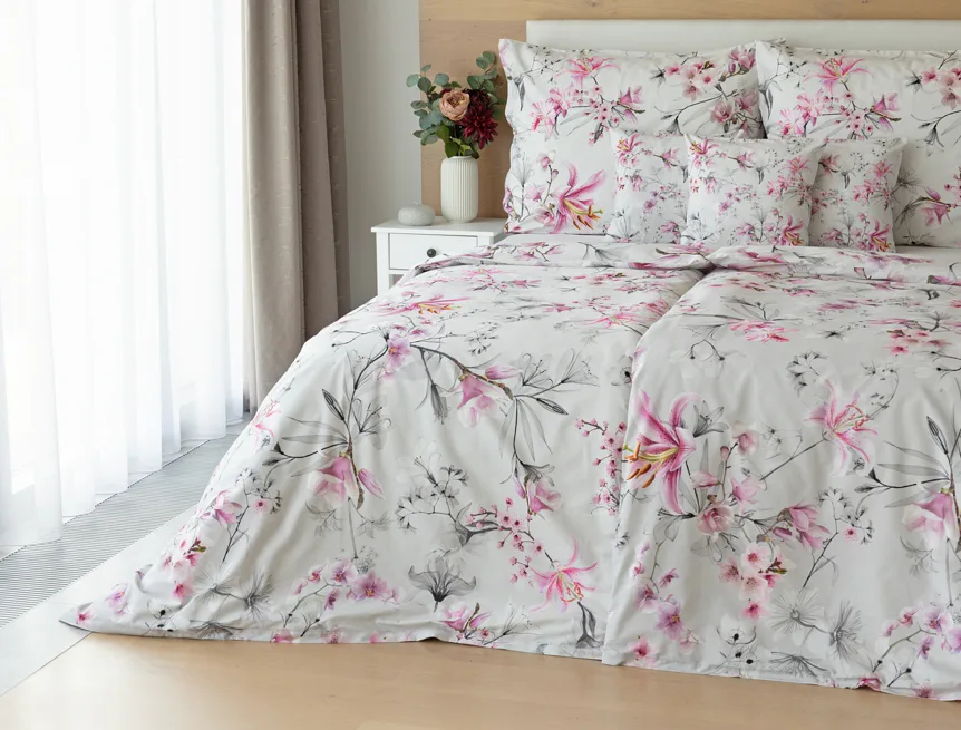 Obklopte sa jemnosťou a eleganciou s bavlnenými obliečkami Elisse. Očarujúci vzor kombinuje kvety exotických orideí a nežných lilií v ružovo-fialových tónoch na svetlo šedom podklade. Obliečky sú vyrobené zo 100% prvotriednej bavlny a prinášajú nie len estetickú hodnotu, ale aj výnimočný komfort.
