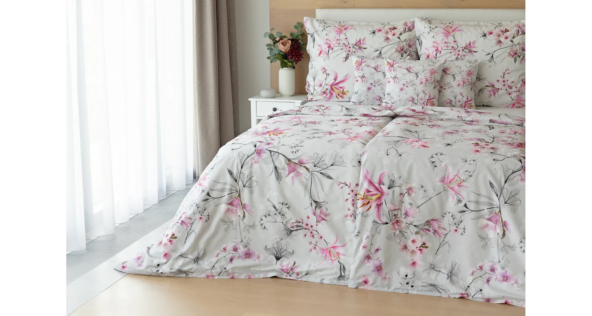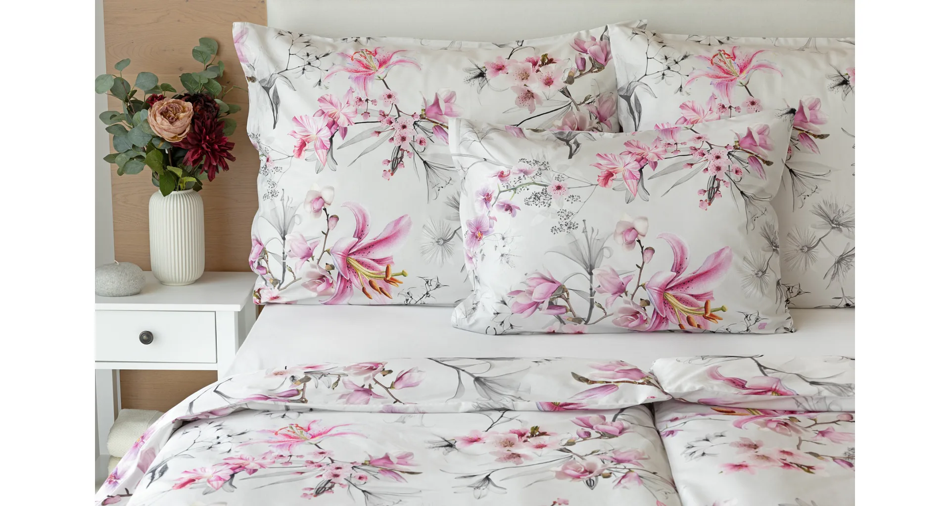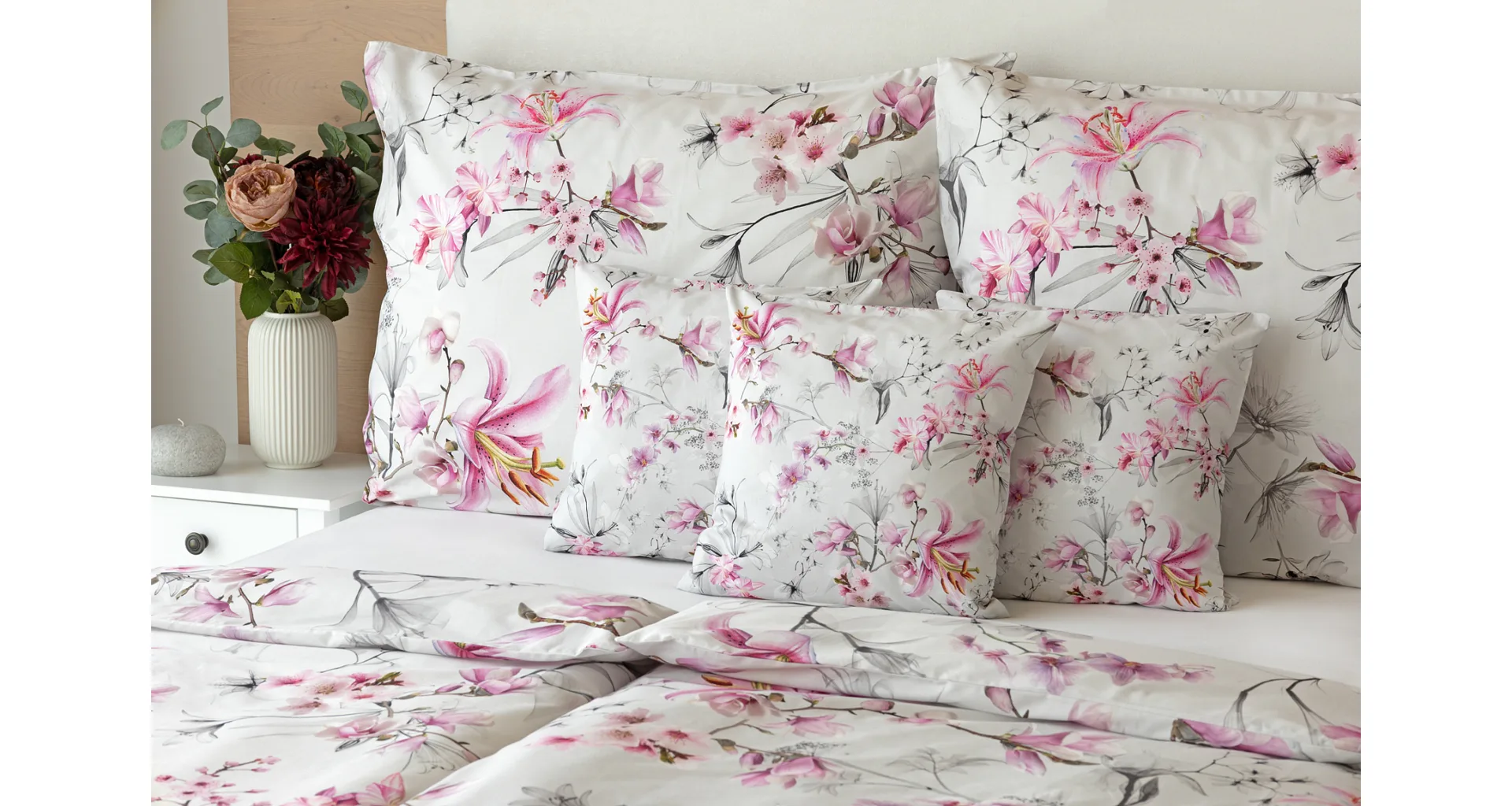 Obklopte sa jemnosťou a eleganciou s bavlnenými obliečkami Elisse. Očarujúci vzor kombinuje kvety exotických orideí a nežných lilií v ružovo-fialových tónoch na svetlo šedom podklade. Obliečky sú vyrobené zo 100% prvotriednej bavlny a prinášajú nie len estetickú hodnotu, ale aj výnimočný komfort.
