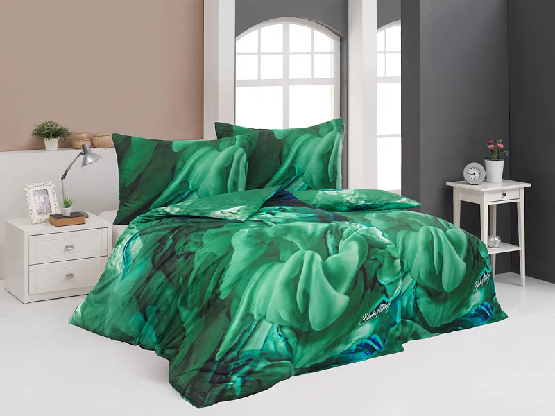 Nalaďte sa na pozitívnu vlnu s temperamentným vzorom posteľnej bielizne Energy. Abstraktný motív v palete smaragdovo-zelených tónov vytvára pôsobivý celok, ktorý sa stane dominantou vašej spálne. Žiarivé farby a prepracované detaily vytvárajú z luxusných obliečok osobité umelecké dielo.