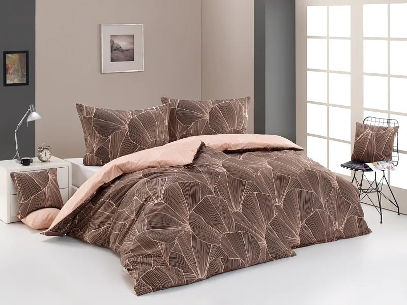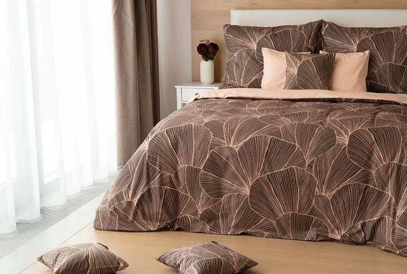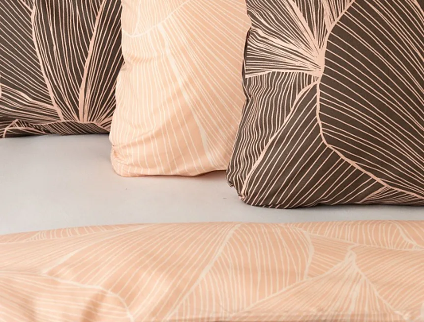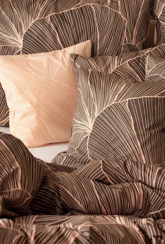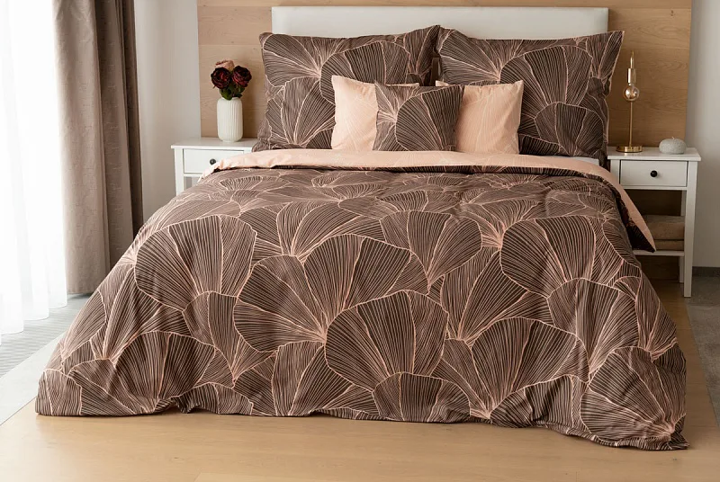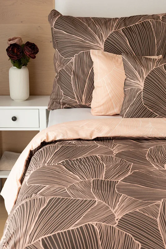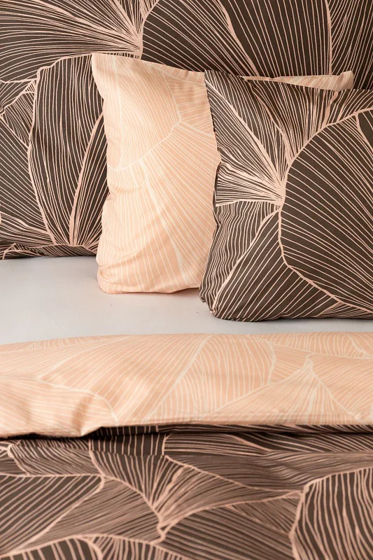 Svieži a elegantný dizajn obliečok Flop si vás získa na prvý pohľad! V abstraktnej kresbe sa snúbia ružovo-púdrové tóny s podkladovou antracitovou. Vrchnej strane prikrývky aj vankúša dominuje antracitový podklad s jemnou púdrovou kresbou. Na spodnej strane prirkývky je svetlá kresba vnesená do tmavšieho ružovo-púdrového podkladu. Spodná strana obliečky na vankúš je taktiež svetlá ako na prikrývke, ale tu je tmavšia kresba vnesená do svetlejšieho podkladu. Detail vankúša zachytáva ilustračná fotografia.