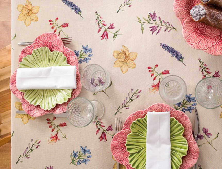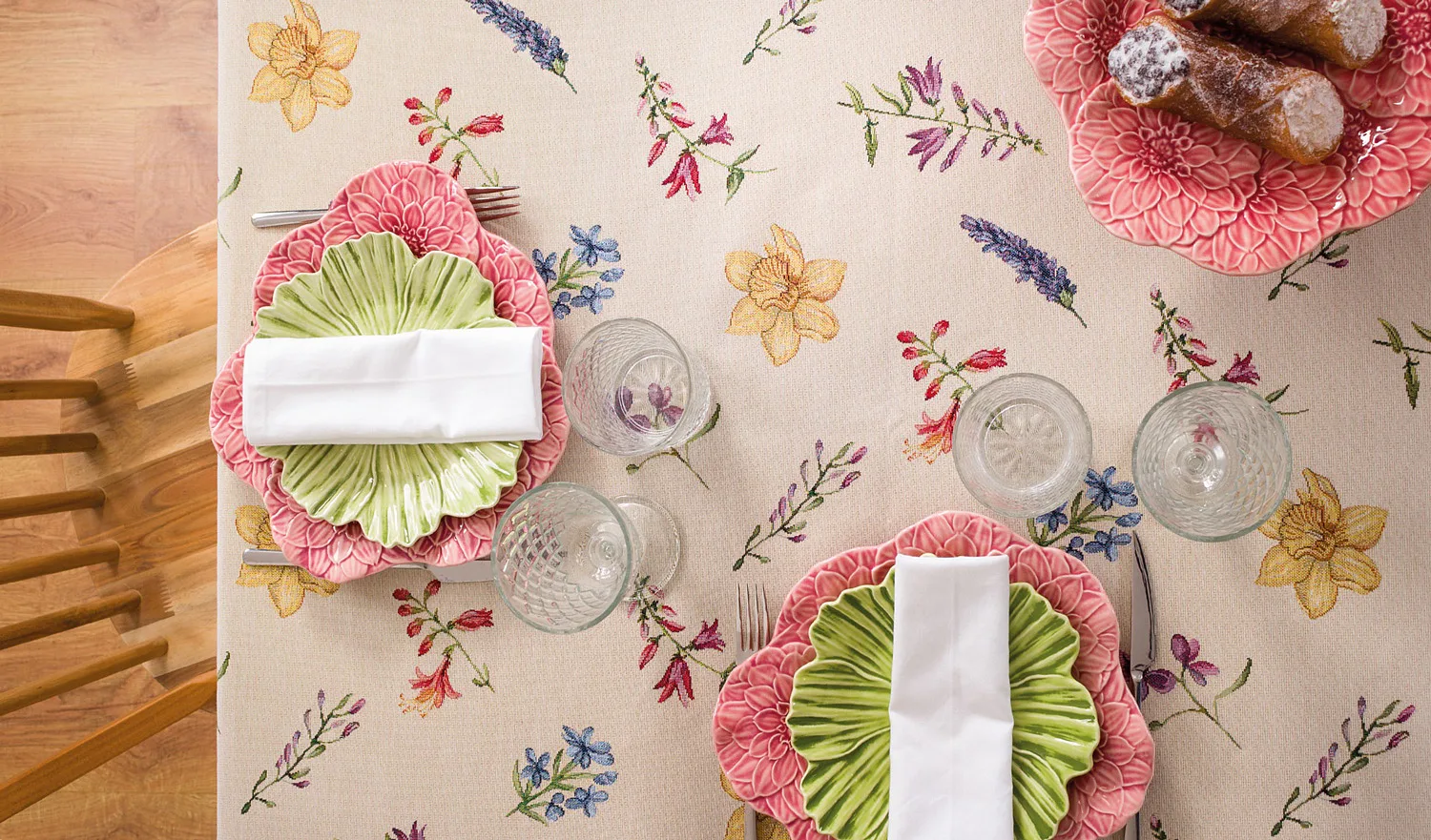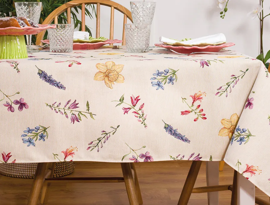 Ubrus Fragant Allover s rozličnými barevnými květy je ideální doplněk pro každou příležitost. Jemný design s rustikálním nádechem se pojí s praktičností díky pevnému a odolnému materiálu.