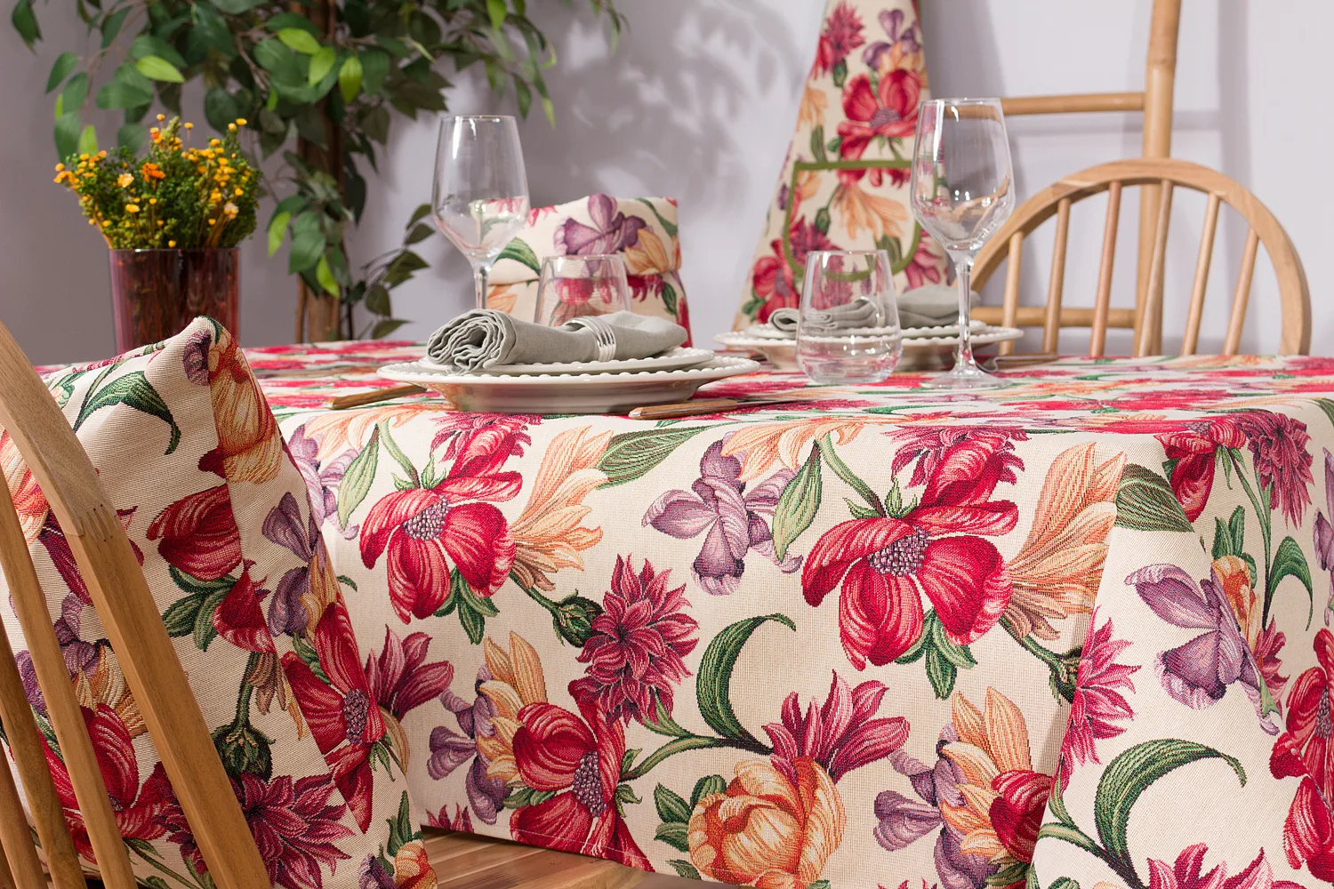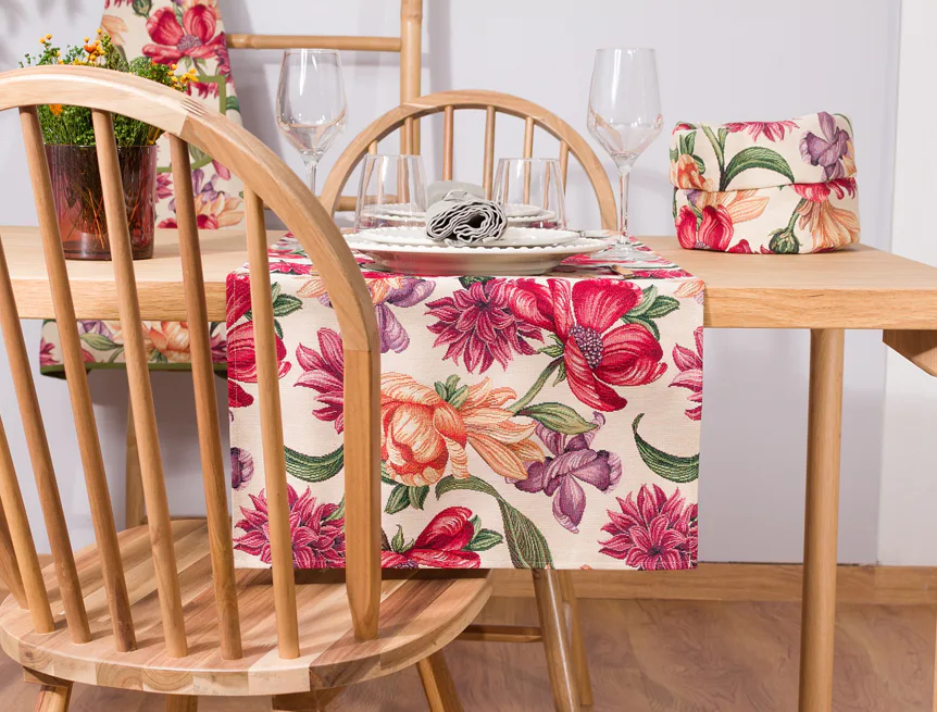 Gobelínové ubrusy můžete hravě kombinovat s dalšími kuchyňskými doplňky z tkaného materiálu. Inspirujte se naší nabídkou doporučených produktů a vylaďte jídelní kout k dokonalosti.