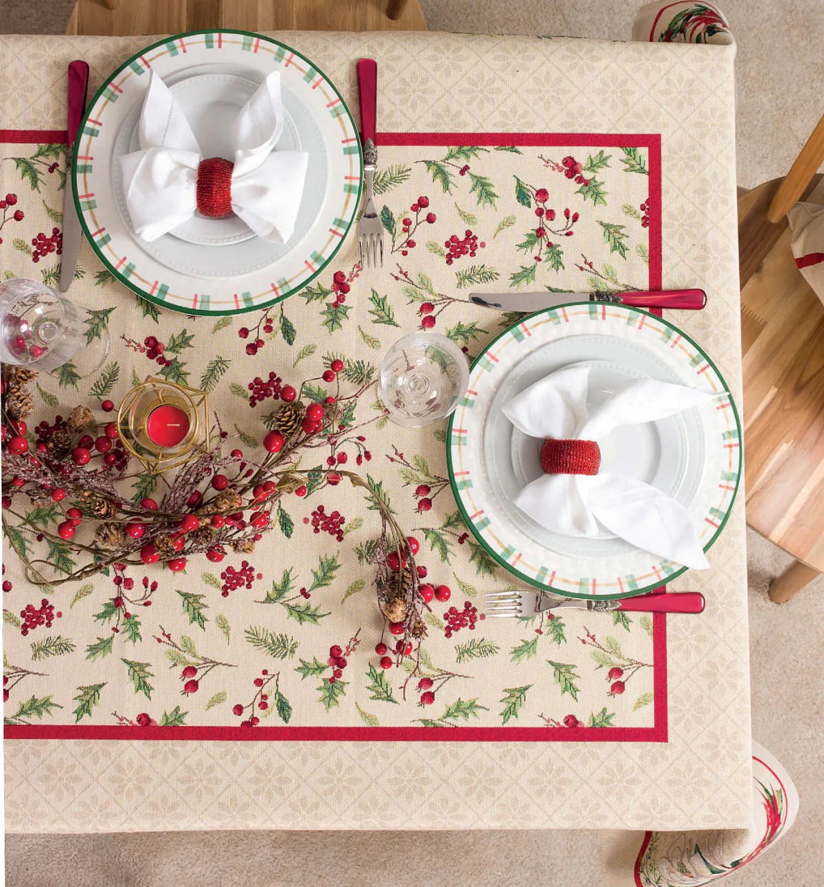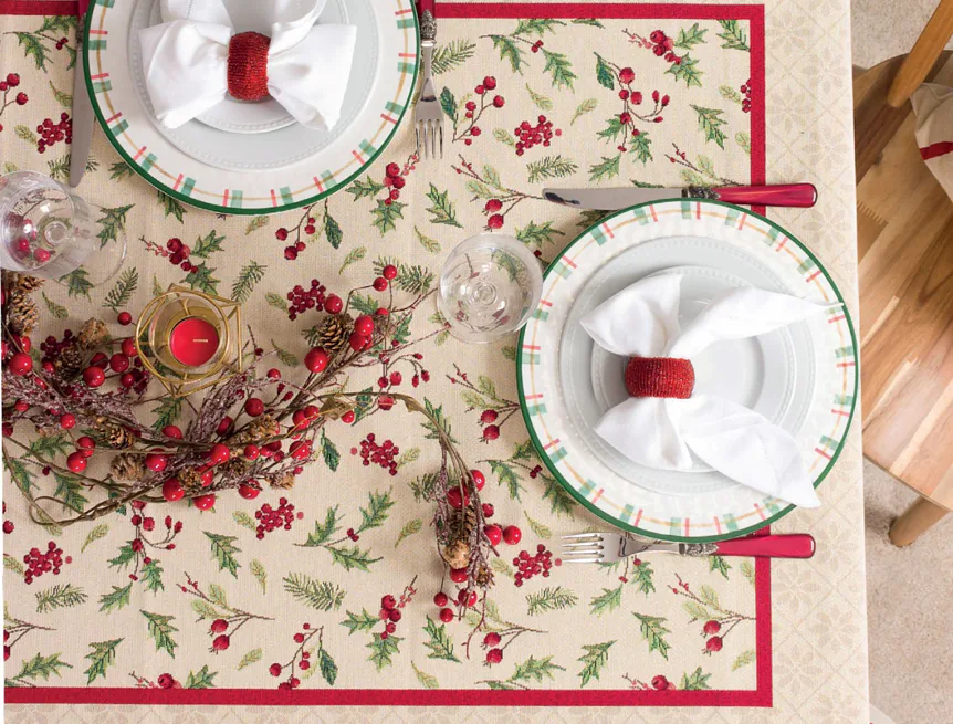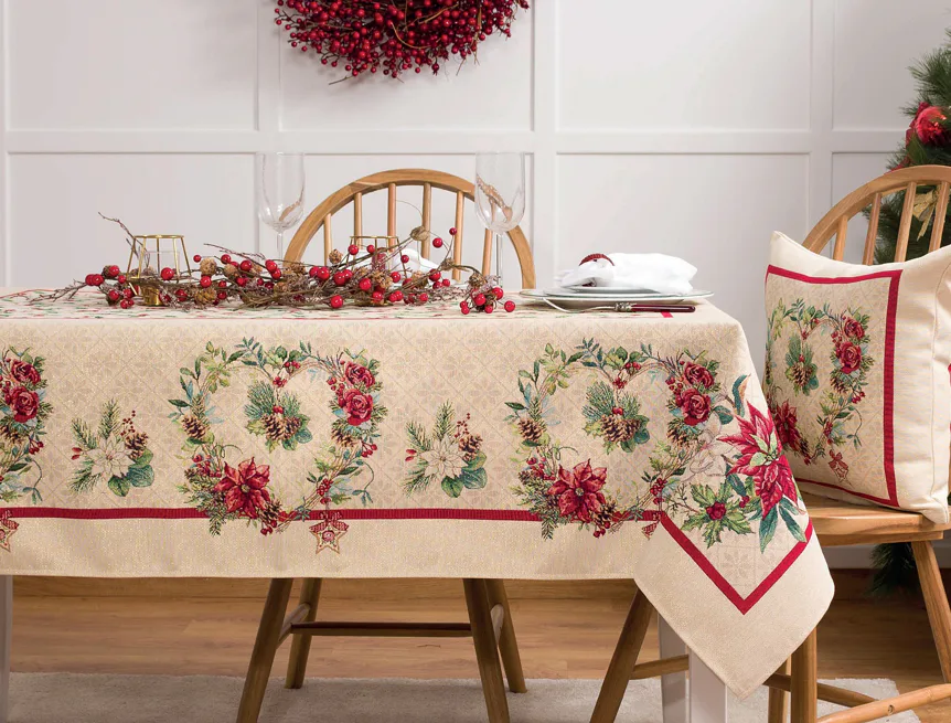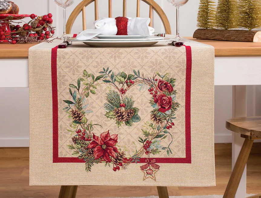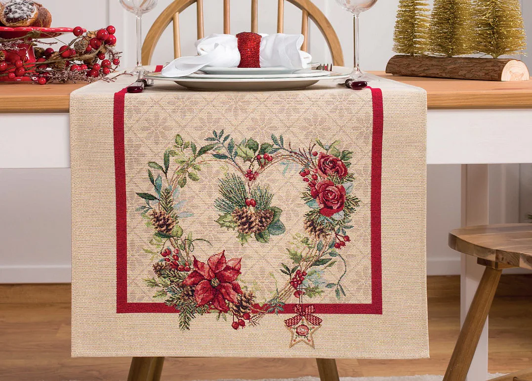 Ubrus Nathalie se svátečním motivem je ideální doplněk pro každou příležitost. Atraktivní design s rustikálním nádechem se pojí s praktičností díky pevnému a odolnému materiálu.