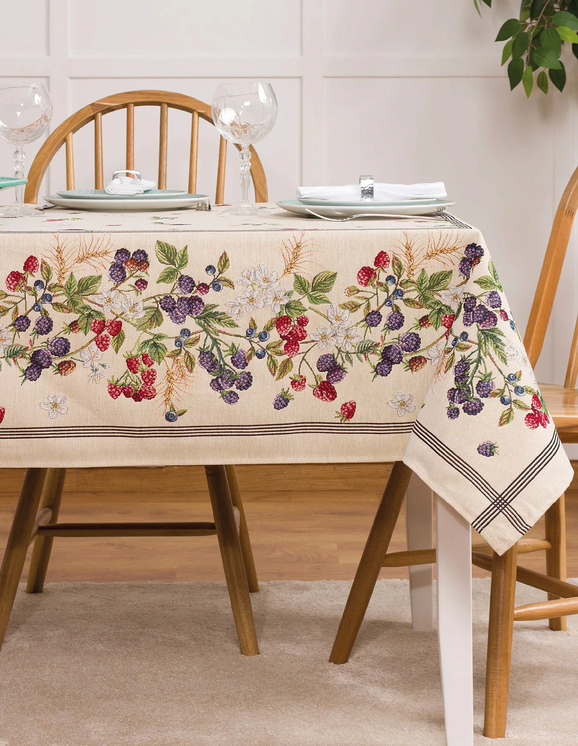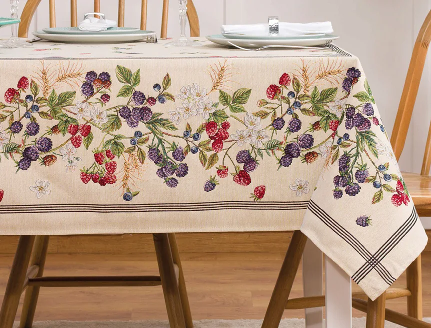 Ubrus Sweet Berries s pestrým motivem lesních plodů je ideální doplněk pro každou příležitost. Atraktivní design s rustikálním nádechem se pojí s praktičností díky pevnému a odolnému materiálu.
